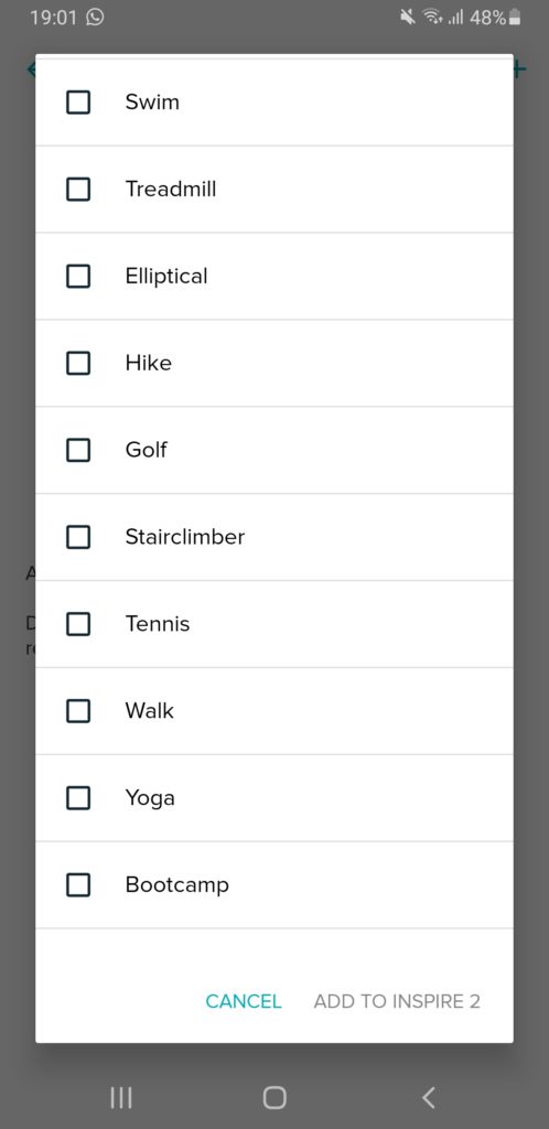 El Inspire 2 es capaz de reconocer y medir ciertas actividades de manera automática, como caminatas, trotes, bicicleta, elípticas, natación, etcétera. Cabe destacar que este no cuenta con GPS, pero se apoya de nuestro teléfono para poder registrar las distancias recorridas.