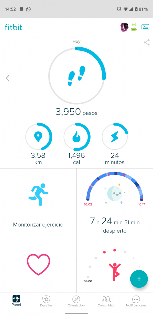 Llegamos a lo que más nos importa si nos compramos un dispositivo de Fitbit, y es sin duda la medición de la actividad física. Hemos hablado mucho sobre todo lo que son capaces de medir los dispositivos de Fitbit en los reviews de Versa, Inspire y Charge 3, y la verdad es que hemos hablado puras maravillas de ellos, ya que cuentan con todo tipo de sensores para medir prácticamente cualquier actividad, y por ahí va el principal problema del Versa Lite.