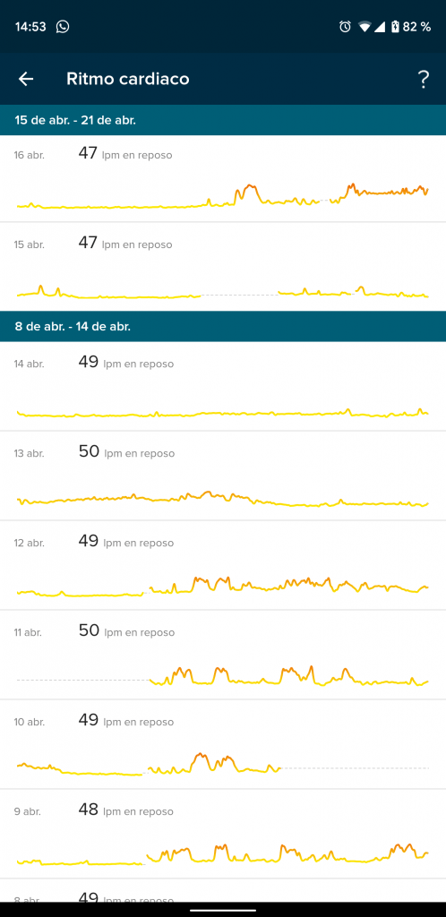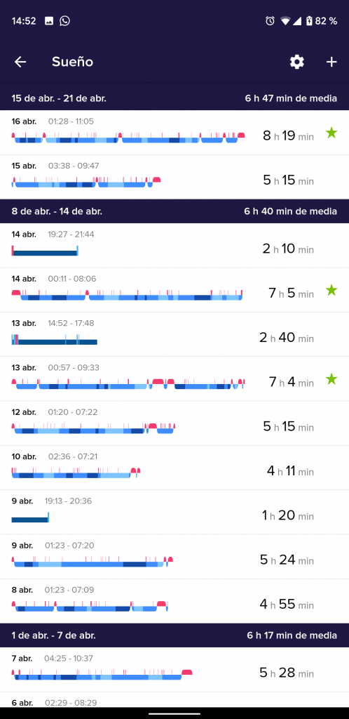 Por lo demás, sigue midiendo nuestras salidas en bicicleta o trote de forma automática, conectándose al GPS del teléfono; seguimos contando con la excelente medición del sueño, que separa las horas despierto, en sueño ligero, profundo y de movimientos oculares rápidos, y que es realmente preciso.