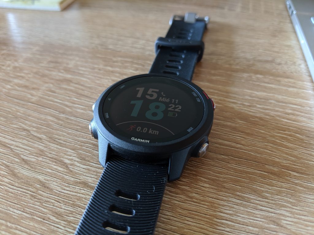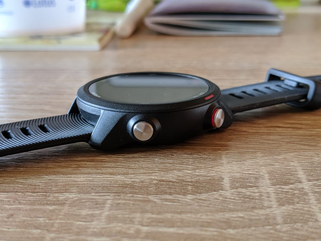 El Forerunner 245 es un reloj inteligente que está claramente enfocado en la actividad física. Su cuerpo está construido en plástico de color negro mate que se caracteriza por ser bastante duro y resistente, y sumado a un aspecto que es bastante deportivo, lo convierte en una excelente opción para la gente que quiere un medidor de actividad física, ya que incluso es resistente al nado.