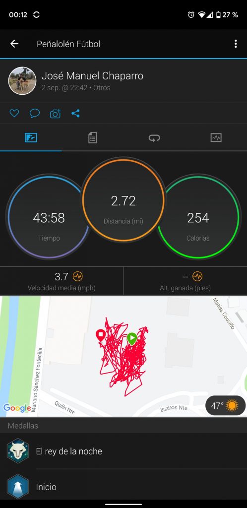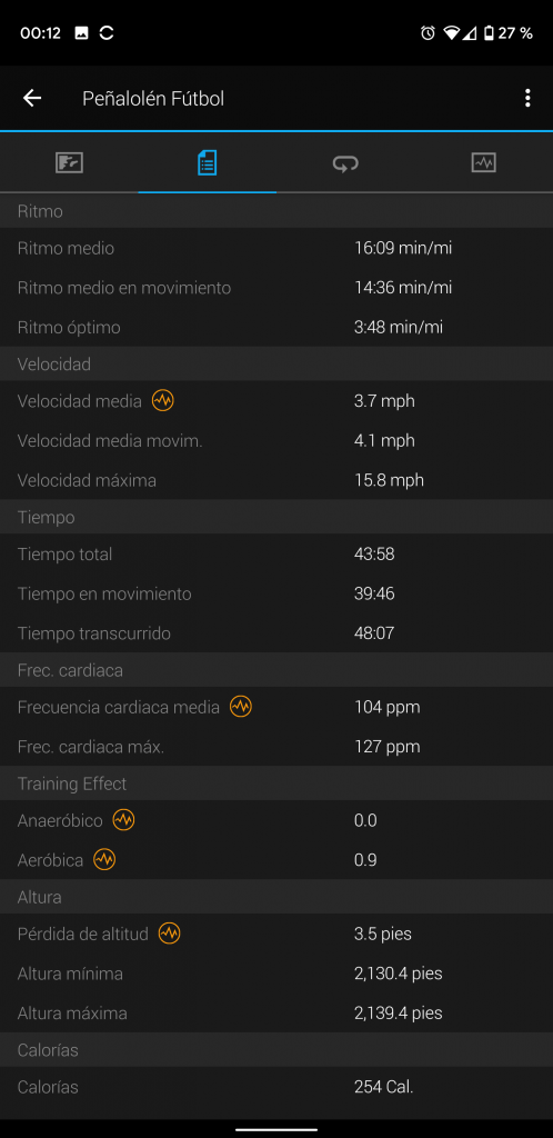 La aplicación que ofrece Garmin cuenta con bastantes funciones y estadísticas que podemos visualizar de forma bastante sencilla. El problema es que son tantas funciones que cuesta un poco acostumbrarse a encontrar lo que queremos fácilmente.