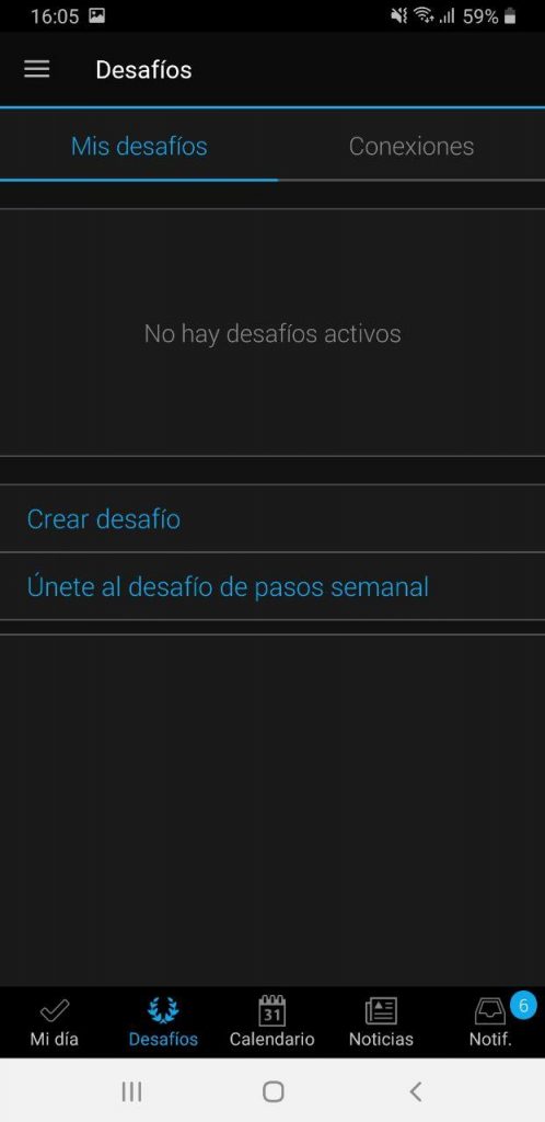 También funciona como una suerte de red social: podemos crear desafíos junto a otras personas, ver un calendario de actividades y noticias.