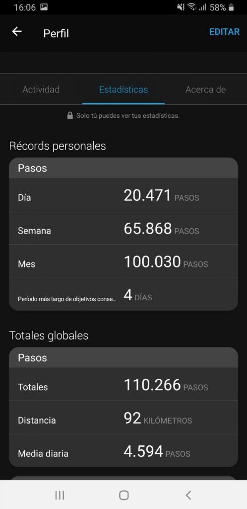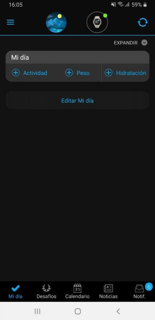 En cambio, Garmin Connect está centrado en ser una aplicación que nos muestra todo lo que el reloj ha capturado. Desde nuestra actividad diaria (como calorías quemadas, ritmo cardiaco, etcétera) hasta las actividades o ejercicios que manualmente activamos desde el reloj (más sobre esto en el apartado de Medición de Actividad).