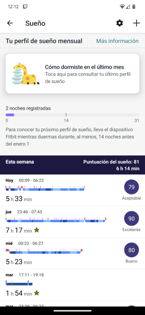 La aplicación es super completa, ofrece gráficas para prácticamente todo, destacando el sueño, el estrés, recuperación frecuencia respiratoria y cardíaca, pero lo malo es que muchas de estas gráficas están ligadas a la membresía de Fitbit Premium, y aunque la opción gratuita te informa de lo básico de cada una, los detalles más interesantes están la suscripción.