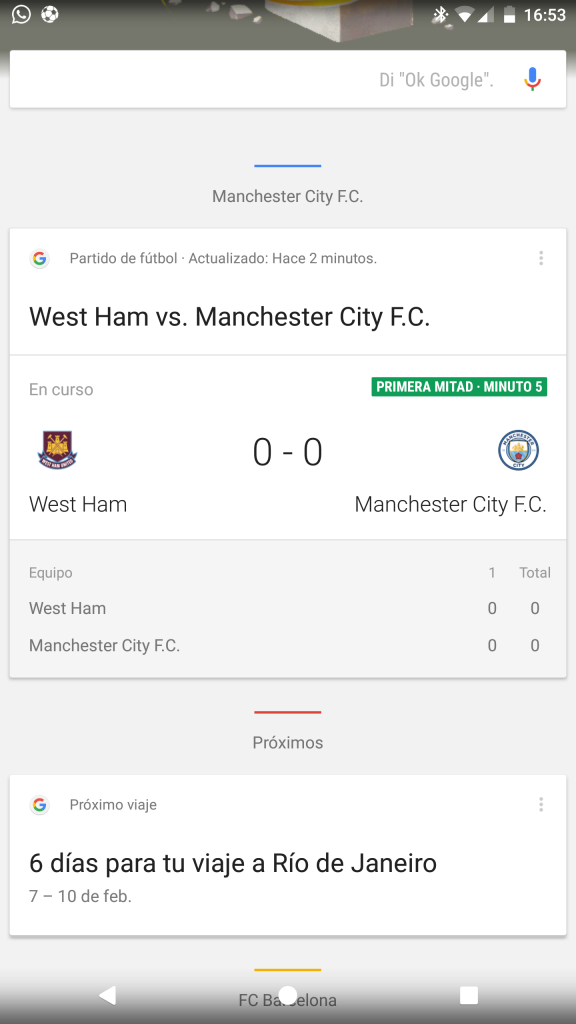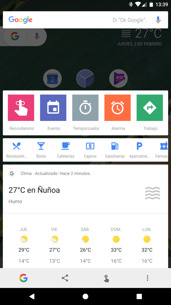 Como comentaba anteriormente, la interfaz de usuario ha cambiado un poco si la comparamos con “Android puro”, los botones de Atrás, Inicio y Aplicaciones Recientes ahora son blancos completamente y el color de todos los detalles de la interfaz han pasado de ser gris a azul, muy Google. Si dejamos mantenido el botón Home, se lanzará Now on Tap, o en caso de tener el teléfono en inglés, Google Assistant, que nos permitirán escanear nuestra pantalla en busca de contenido, traducciones o seleccionar texto en imágenes.