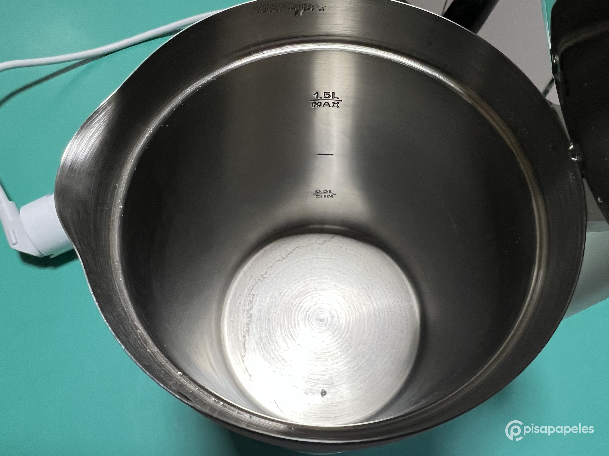 Un detalle mínimo, pero no por eso menos importante, es cuando el agua está completamente hervida, ya que el exterior del hervidor se calienta muy poco, prácticamente queda tibio, por lo que el riesgo de quemarte de forma accidental se reduce bastante en comparación con otros hervidores te quemas al tocarlos en su exterior.
