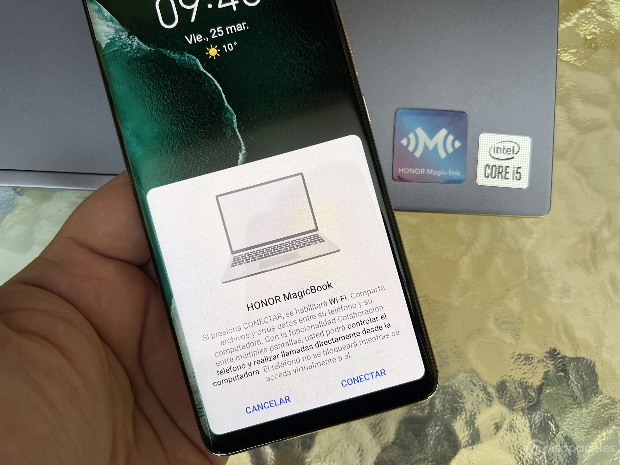Y al igual como sucedía con Huawei y sus computadores con Huawei Share, pues con Honor pasa exactamente lo mismo, ya que los computadores con Magic-link permiten que los móviles como nuestro Honor 50 pueda sincronizarse con solo acercar el móvil al PC usando la tecnología NFC.