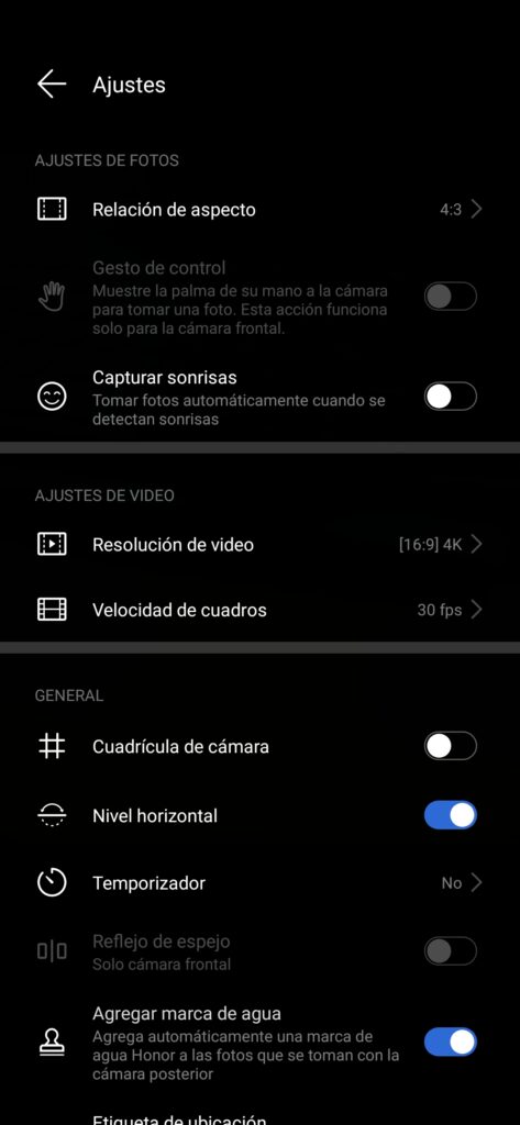 Ahora hemos llegado al apartado de video donde nuestro protagonista tiene la capacidad de grabar en calidad 4K con hasta 30 cuadros por segundo.