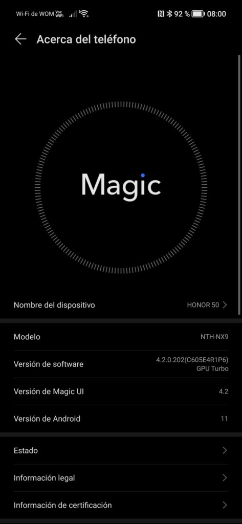 En su interior nos encontraremos con el procesador Qualcomm Snapdragon 778G 5G, acompañado con 8GB de RAM y 256GB de almacenamiento interno. Su sistema operativo es Android 11 con la capa Magic UI 4.2 y la incorporación de los servicios de Google, por si habían dudas.