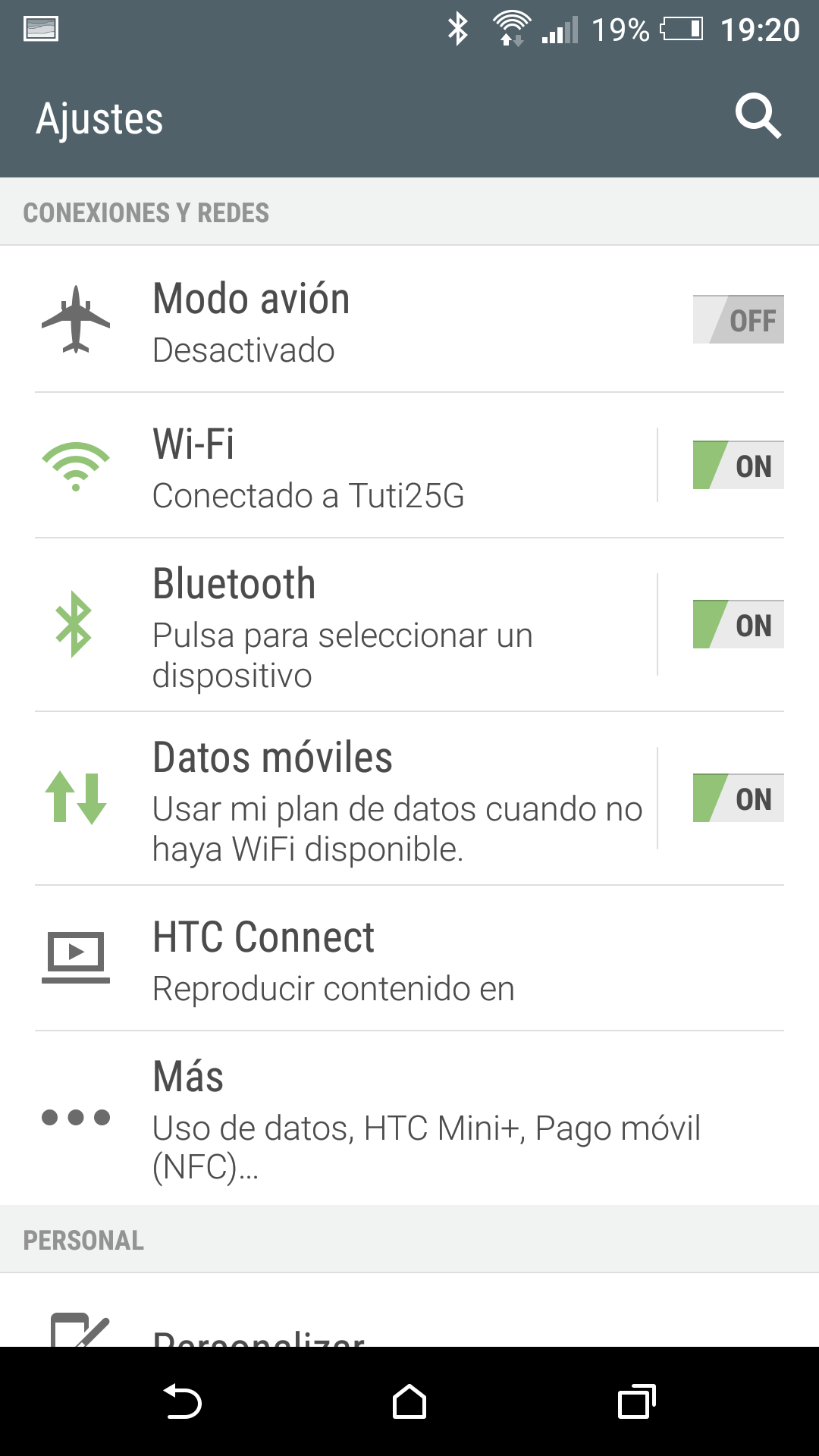 | Sistema operativo | Android 6.0 Marshmallow con HTC Sense 7.0 |