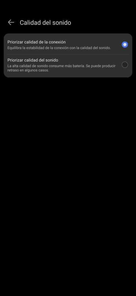 Seguimos con la sección “Calidad de sonido” en donde vamos a poder elegir dos opciones: Prioridad calidad de la conexión, y Priorizar calidad del sonido.