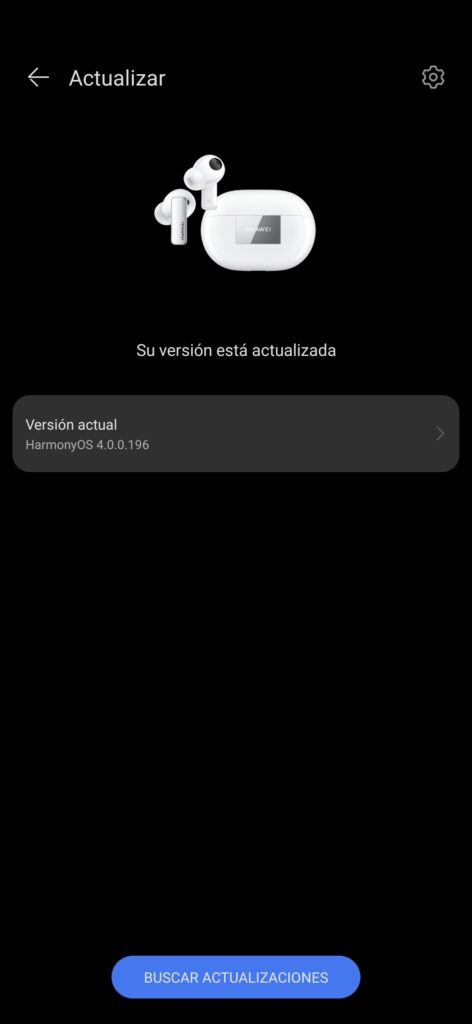 La app también nos ofrece la posibilidad de actualizar el firmware de los audífonos. En mi caso, ya venían actualizados a la versión HarmonyOS 4.0.0.196.