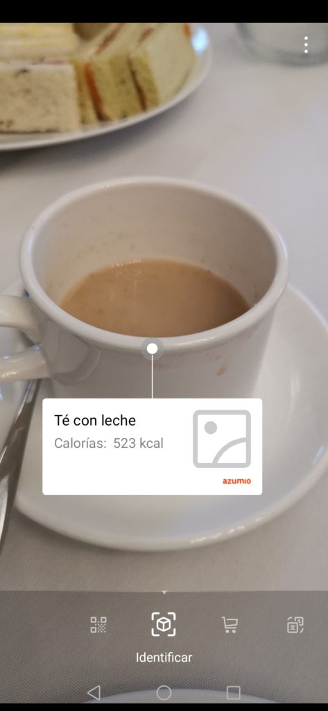 La app también incorpora la función HiVision con la cual podremos usar la cámara para enfocar objetos y así tener más información relacionada. Por ejemplo, podemos ver una galleta y HiVision te indicará cuántas calorías posee.