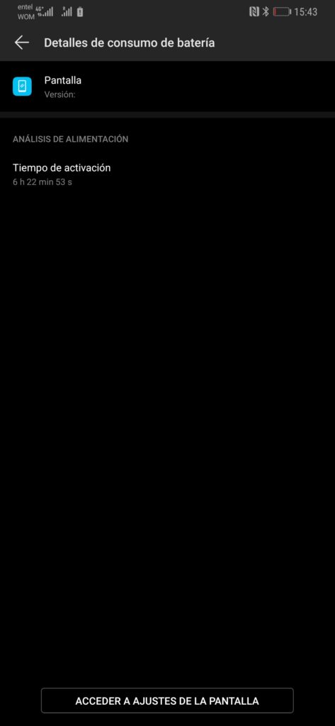 PANTALLA ACTIVA: 6 horas, 22 minutos