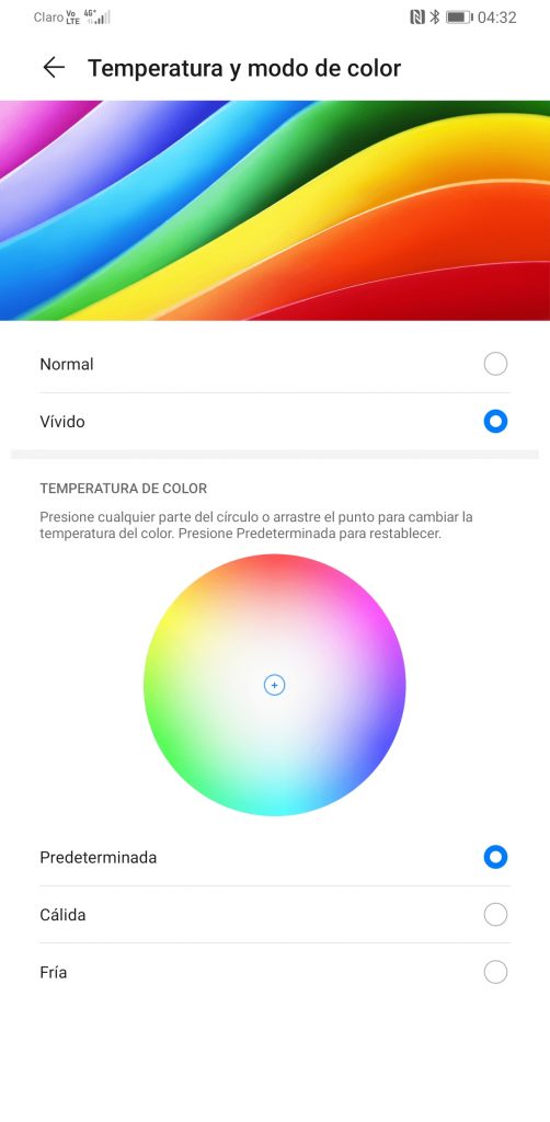 En cuanto a los ajustes disponibles, vamos a poder activar el “Tono natural” de imagen, modificar la temperatura y modo de color entre Normal y Vívido, así como activar el Descanso visual. Podremos activar el Modo oscuro, modificar el tamaño del texto y de visualización, cambiar la resolución de pantalla, esconder o activar el nombre de operador, mostrar la velocidad de red y opciones para esconder la muesca por software.