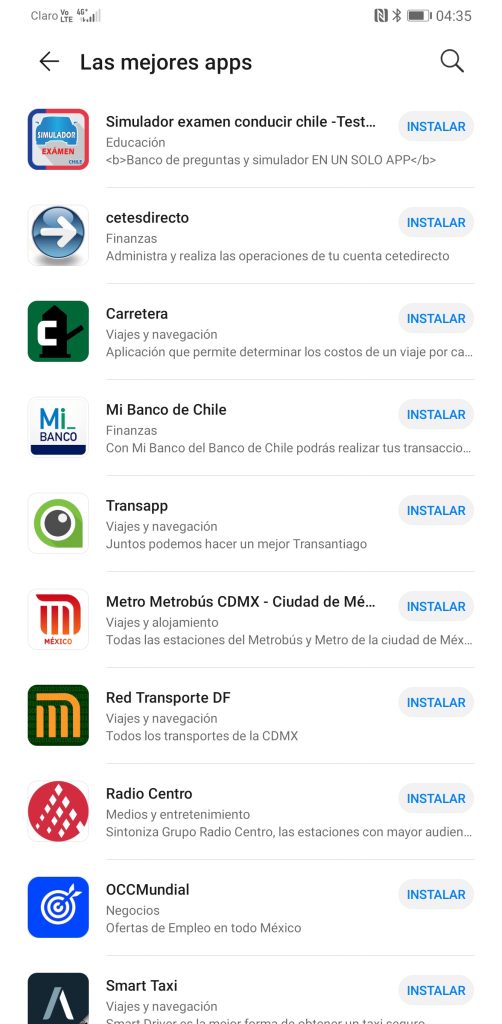 La solución que te brinda Huawei es acceso a su tienda de aplicaciones llamada AppGallery, donde encontraremos variadas aplicaciones chilenas e internacionales, como las que te mencionaré a continuación: