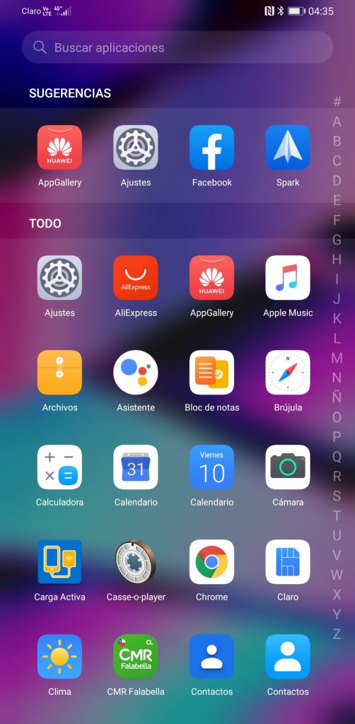 En cuanto a aplicaciones propietarias, nos vamos a encontrar con la AppGallery, AliExpress, un administrador de archivos, bloc de notas, brújula, calculadora, calendario, app de clima, correo, espejo, Medición AR, grabadora de audio, app de música, navegador, Optimizador, Phone Clone, app de Salud, Temas, Video, y WPS Office.