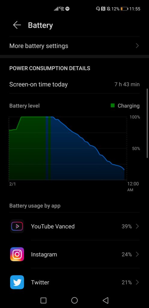 Podrán notar que en la prueba realizada logré conseguir casi 8 horas de uso de pantalla, aún quedando un 12% de batería disponible (esto ya cercano a medianoche). Esta la realicé con la pantalla en su resolución máxima y a 90 Hz de refresco, Bluetooth encendido, y en ocasiones alternando entre WiFi y los datos móviles. Supongo que con 5G activado, el consumo ha de ser un poco mayor.
