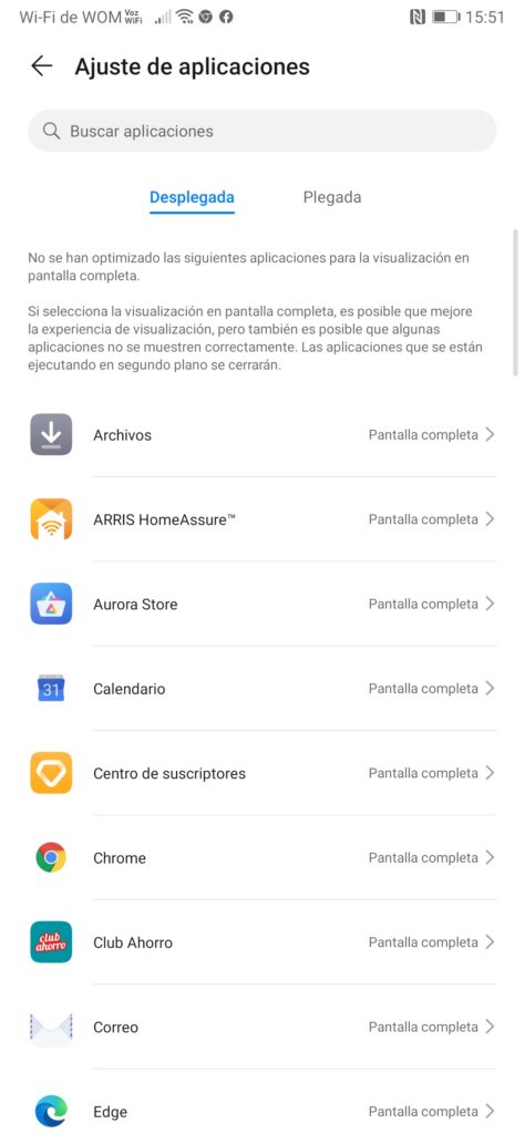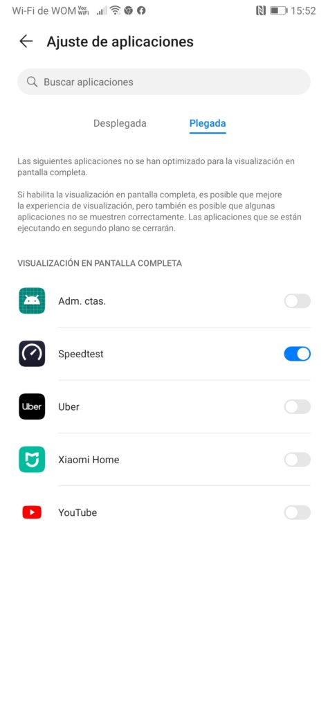 También contamos con la posibilidad de elegir el modo de visualización de una aplicación específica cuando la pantalla se encuentra desplegada o plegada.