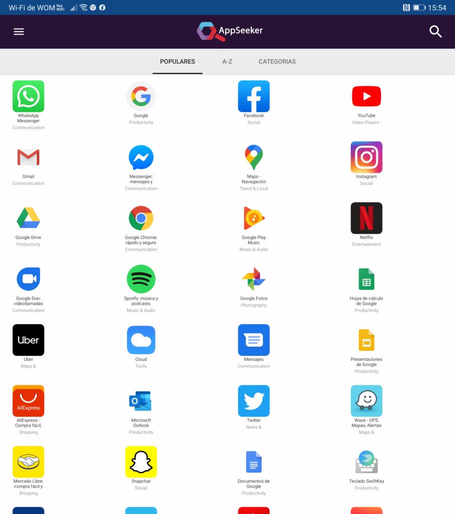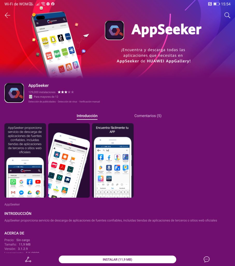 Pero dentro de AppGallery podemos encontrar la aplicación AppSeeker, con la cual vamos a encontrar más aplicaciones que en la tienda de Huawei no están disponibles por el momento. Lo que hace esta app es buscar aplicaciones en otras tiendas reconocidas y sitios webs oficiales. Cada aplicación que descargues está revisada por Huawei.