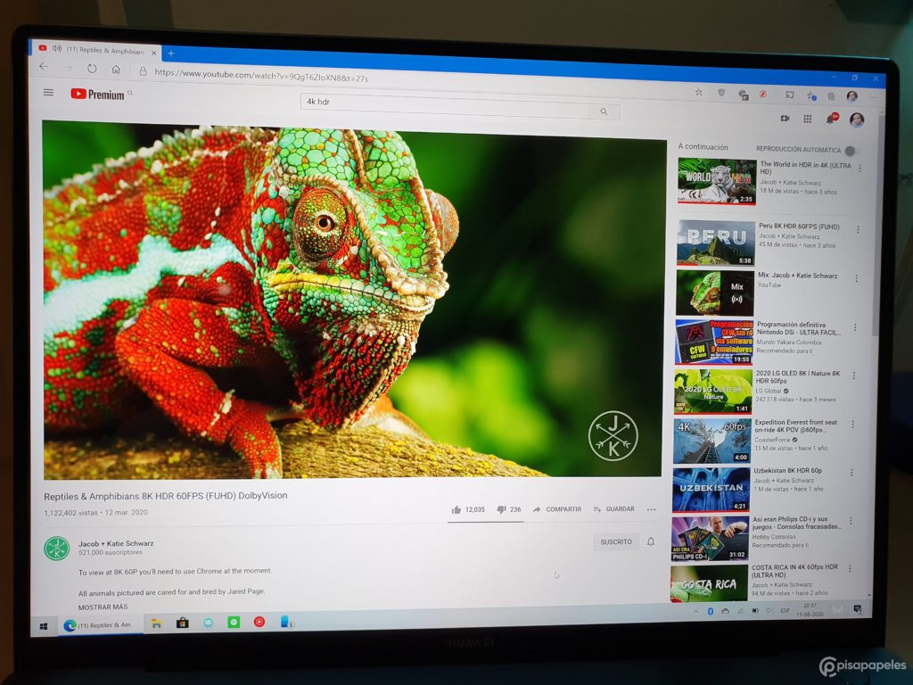 Luego vino su pantalla táctil de 13,9 pulgadas con resolución 3K que se ve muy bien, con un brillo bien alto, colores muy vívidos y sus bordes muy delgados fue lo mejor, de hecho, yo antes tenía un MacBook Air del 2015 con una pantalla con bordes muy gruesos, y hacer el salto a este MateBook fue un gran cambio.
