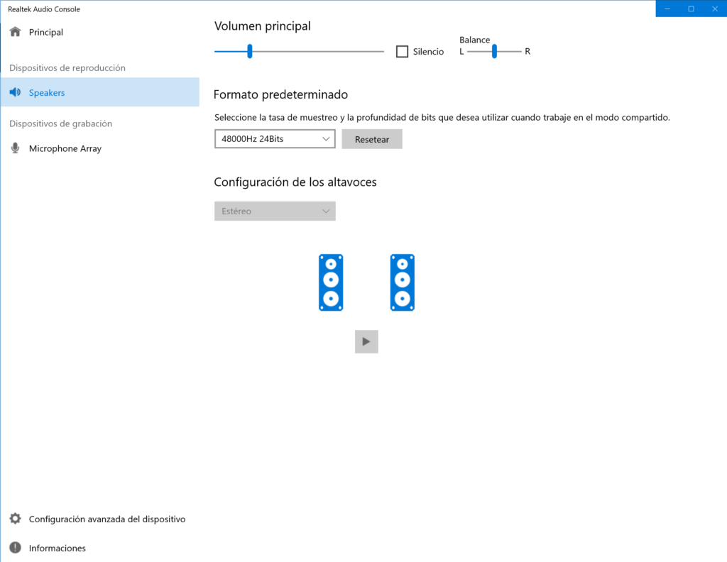En su lugar, tenemos una aplicación muy básica llamada Realtek Audio Console que solo nos permitirá modificar el volumen de los altavoces, micrófonos, entre otros.