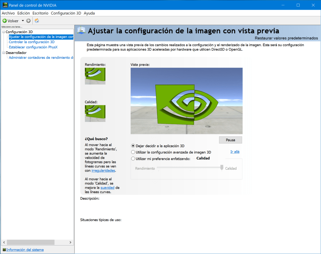 También tenemos el panel de control de NVIDIA para poder realizar algunos ajustes a la tarjeta de video dedicada NVIDIA GeoForce MX250 que incorpora. Además, tenemos la posibilidad de abrir una aplicación y elegir si queremos ejecutarla con la GPU Intel UHD o con la NVIDIA MX250.