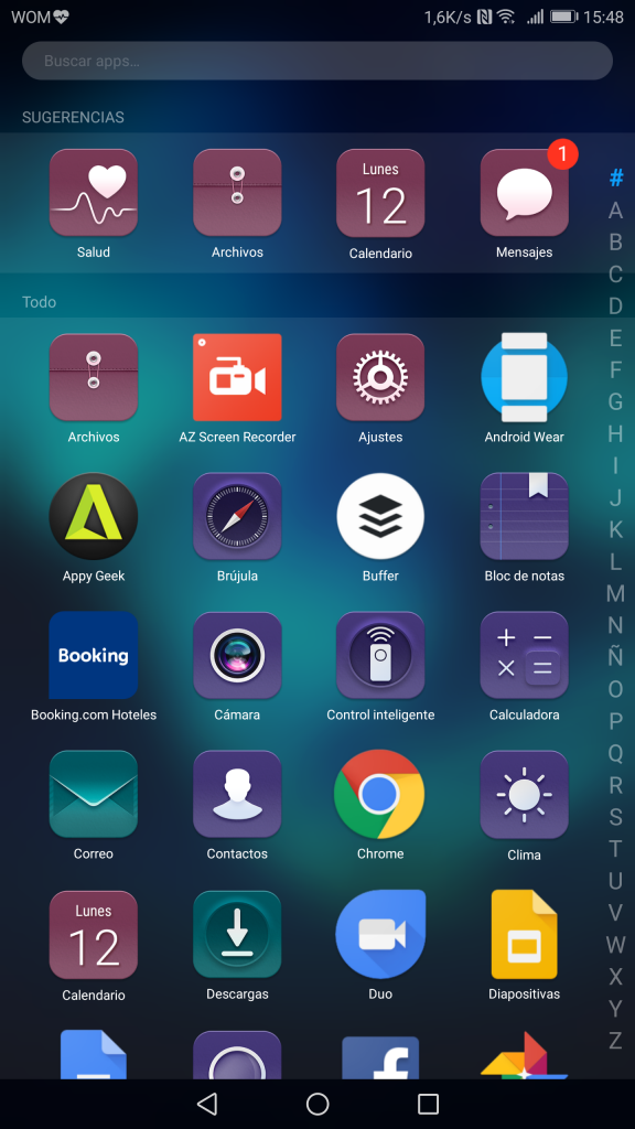 Aplicaciones usadas: Twitter, Facebook, Messenger, Google Chrome, Google Now, Spotify, Música, Gmail, YouTube, Sismo Detector, Google Fit, Android Wear, Instagram, WhatsApp y Telegram.