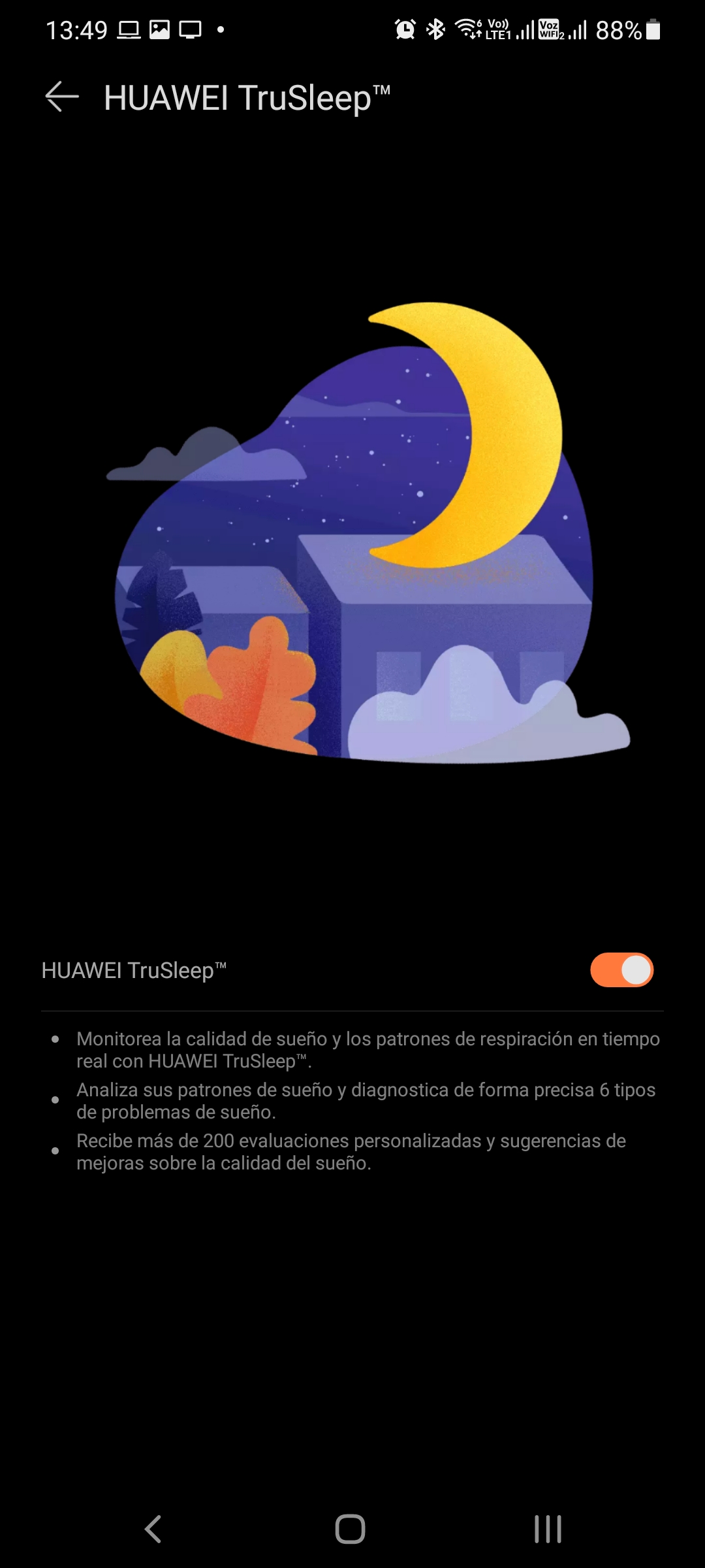 Un elemento que se repite el plato en este nuevo reloj de Huawei es la función TruSleep. Esta sirve para monitorear el sueño en sus diferentes fases. Y en relación con esto, el reloj monitorea bastante bien y de forma precisa. Junto con la detección del sueño, el dispositivo permite establecer una alarma para despertar en la fase más adecuada, y así no levantarse cansado.