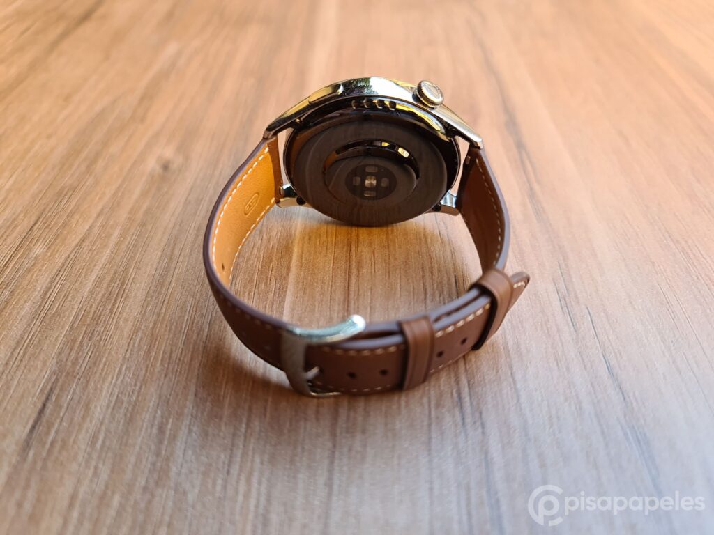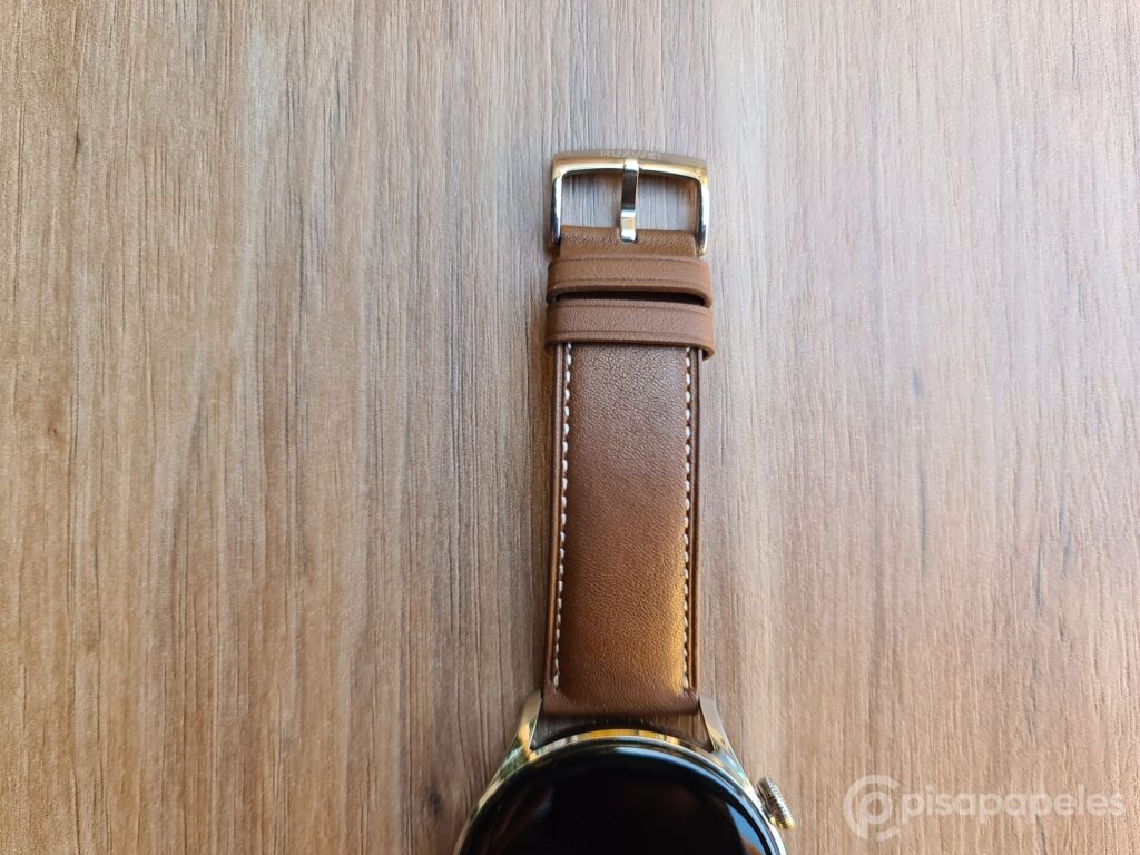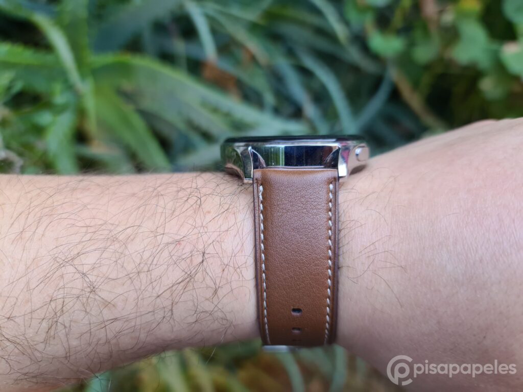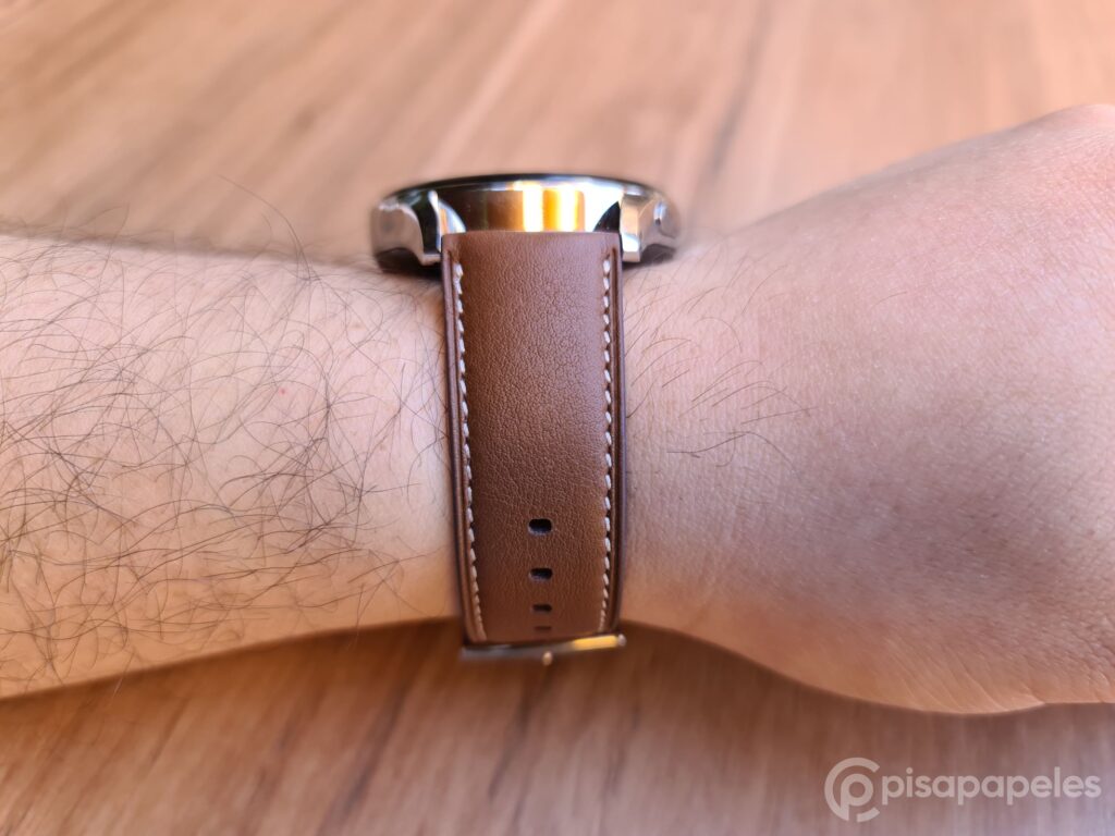 El dispositivo no trae otras correas en la caja, por lo que esta versión con correa de cuero no es recomendable para hacer ejercicio, debido a que el cuero se deteriora rápidamente con el agua y el sudor. De todas maneras, el reloj permite cambiar las correas con facilidad, sólo es cosa de buscar una pulsera de silicona de 22 mm y cambiarla.