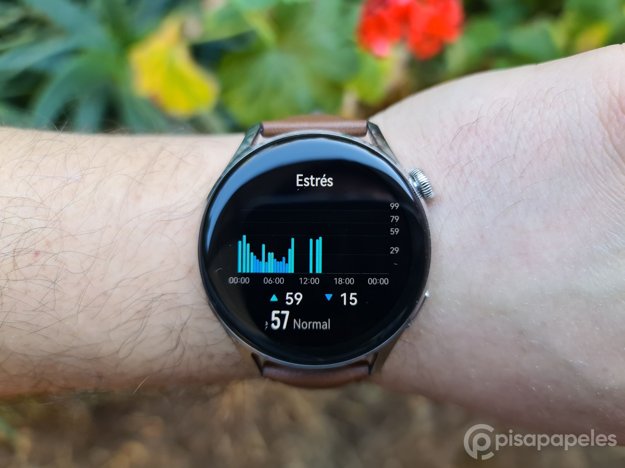Volviendo a las funciones propias, el Huawei Watch 3 cuenta con monitor de frecuencia cardíaca 24/7, al igual que medidor de saturación de oxígeno. Estos datos resultaron ser muy precisos. El reloj también detecta cuando estamos demasiado tiempo estáticos, invitándonos a hacer una pausa en nuestra rutina, movernos un poco o realizar ejercicios de estiramiento.