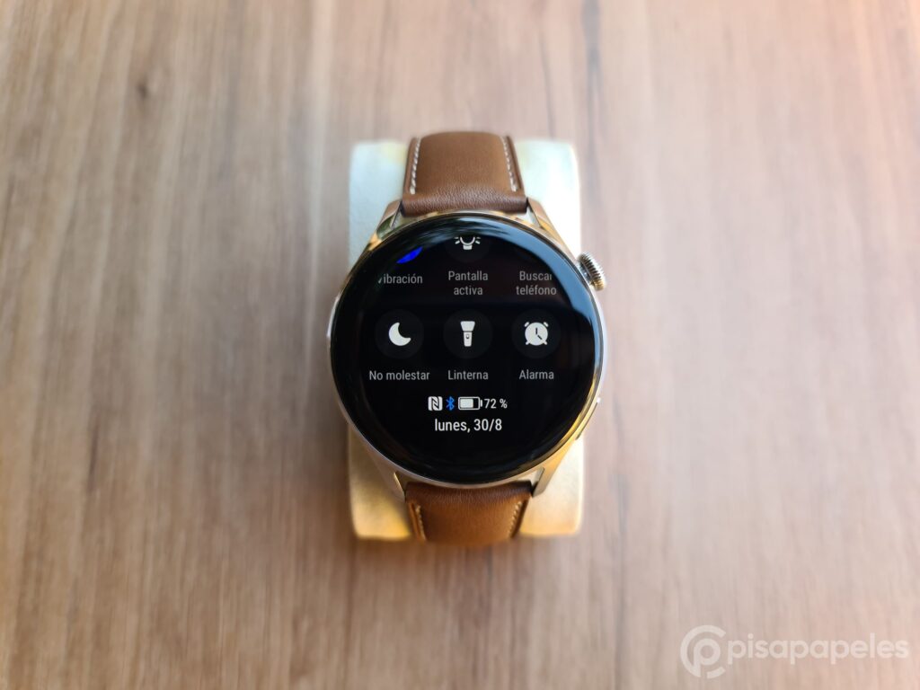 El panel que monta el Huawei Watch 3 es uno táctil redondo de tipo AMOLED, el que posee un tamaño de 1.43 pulgadas con resolución 466 x 466 pixeles. A la hora de observarlo se nota claramente la nitidez y gran definición, sin percibir los pixeles. Gracias a la pantalla AMOLED y un alto brillo de 1000 nits, la visualización a pleno sol es buena y sus colores son perfectos. Además, el sensor de brillo automático reacciona rápido a los cambios de iluminación externa.