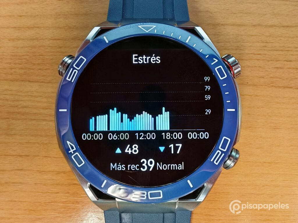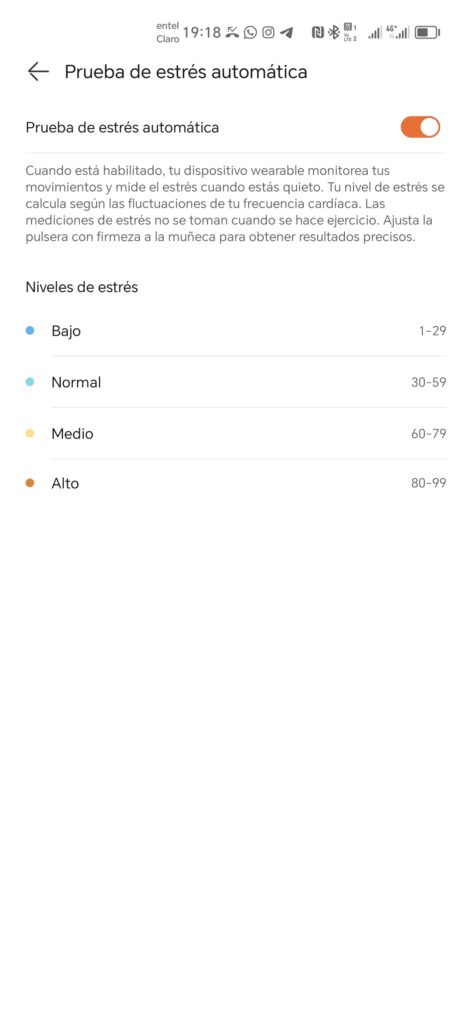 El reloj también tiene la posibilidad de ir midiendo de manera automática o manual tu estrés, aunque solo se realiza de manera automática cuando estás quieto.