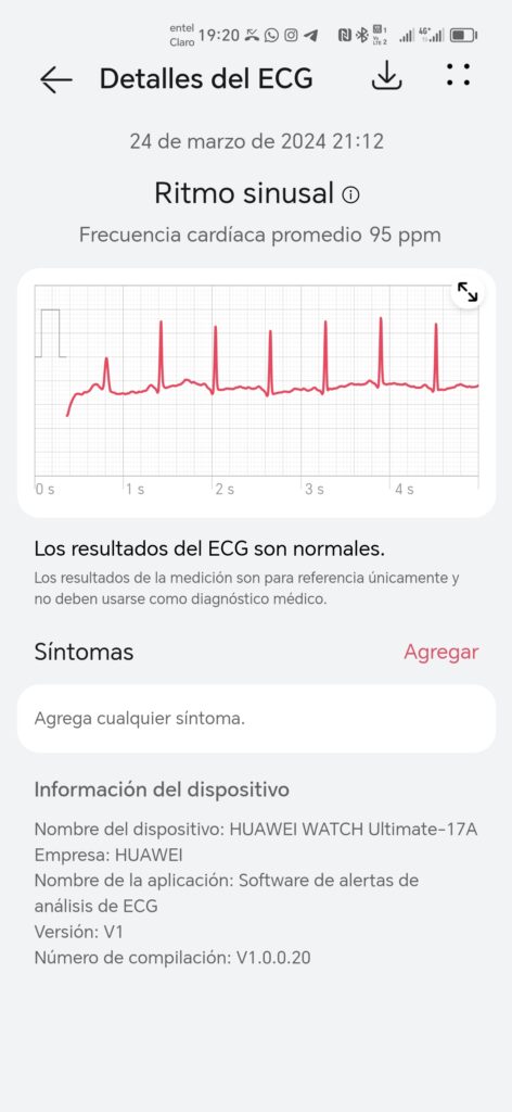 Debo decir que me impresionó y a la vez me llamó la atención su parte dedicada a la salud, ya que no había visto otros relojes con opciones para detectar arritmias o rigidez arterial. Lamentablemente este reloj encontró una anomalía en mi salud física, así que pretendo ir al médico en los próximos días. Sin embargo, usé por mucho tiempo el Apple Watch Series 7 y el Samsung Galaxy Watch 5, y ninguno de los dos me detectó algo, ambos decían que mi salud era buena.