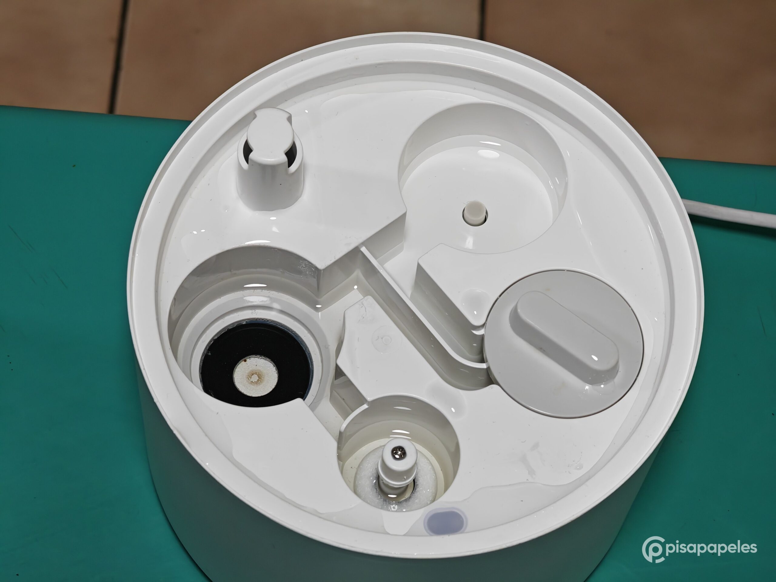 El tanque de agua también se puede remover para que tengamos acceso al área interna del dispositivo porque si queremos realizarle una limpieza. En este lugar también se encuentra la luz ultravioleta (UV-C) que esteriliza de manera instantánea el agua y así recibamos una bruma saludable.