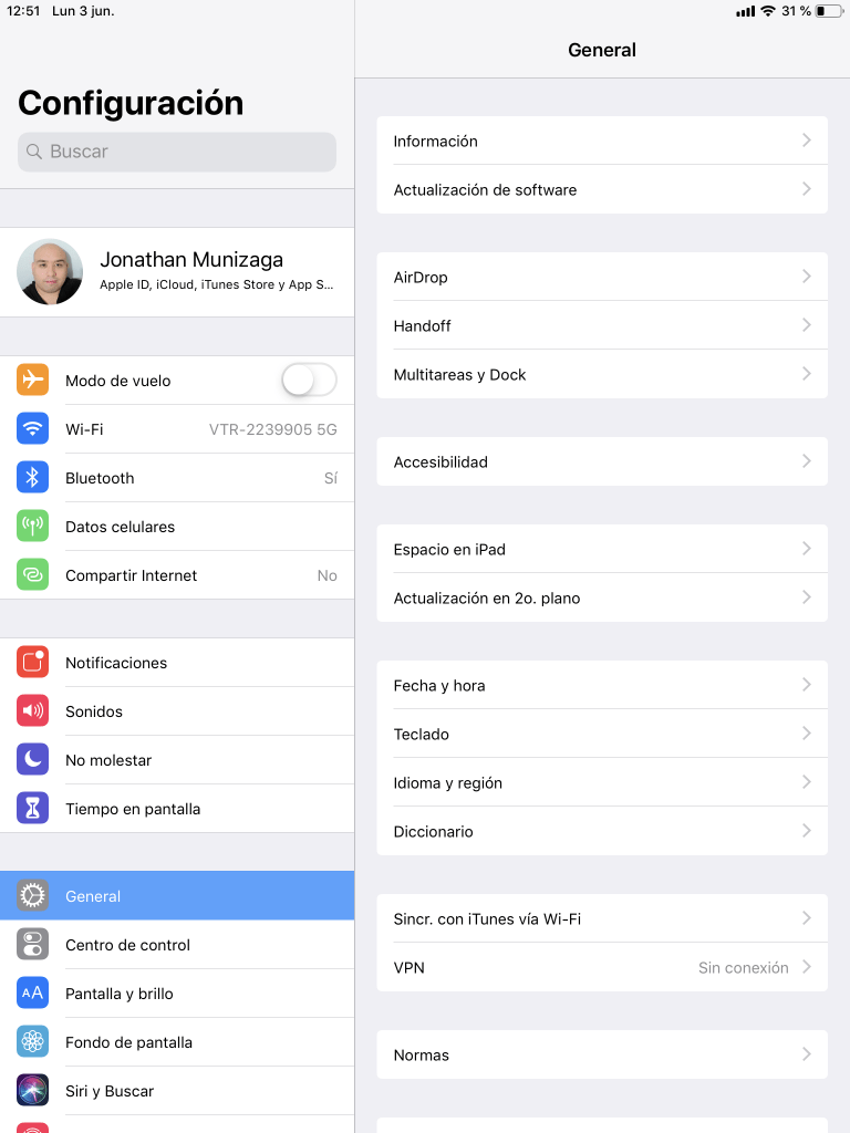 Nuestro protagonista viene de fábrica con el sistema operativo iOS 12.1.3, pero al momento de conectarlo a internet el iPad se actualizará a la versión 12.3.1 que fue la que probé durante este periodo de prueba.