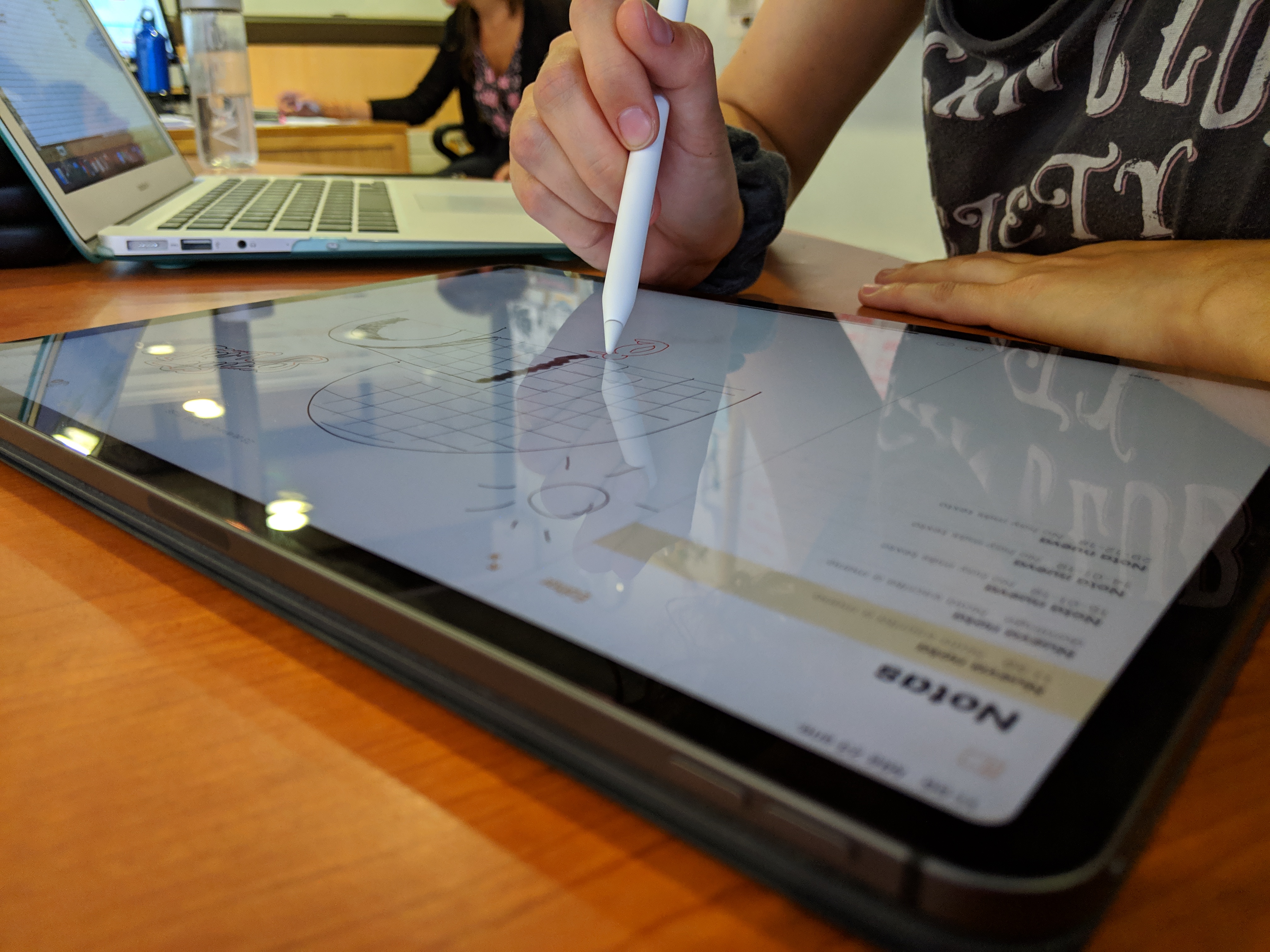 Por otro lado, tenemos el Apple Pencil, que es el aspecto más Pro de este iPad. Me imagino dedicándome al dibujo y diseño con este dispositivo y la cantidad de cosas que podría realizar es impresionante. Es tan placentero escribir y dibujar con el Pencil que incluso me he entusiasmado un poco para aprender a hacerlo mejor. Así de bueno es, aunque es de los pocos motivos para poder invertir en este dispositivo para un trabajo, frente a un computador convencional.