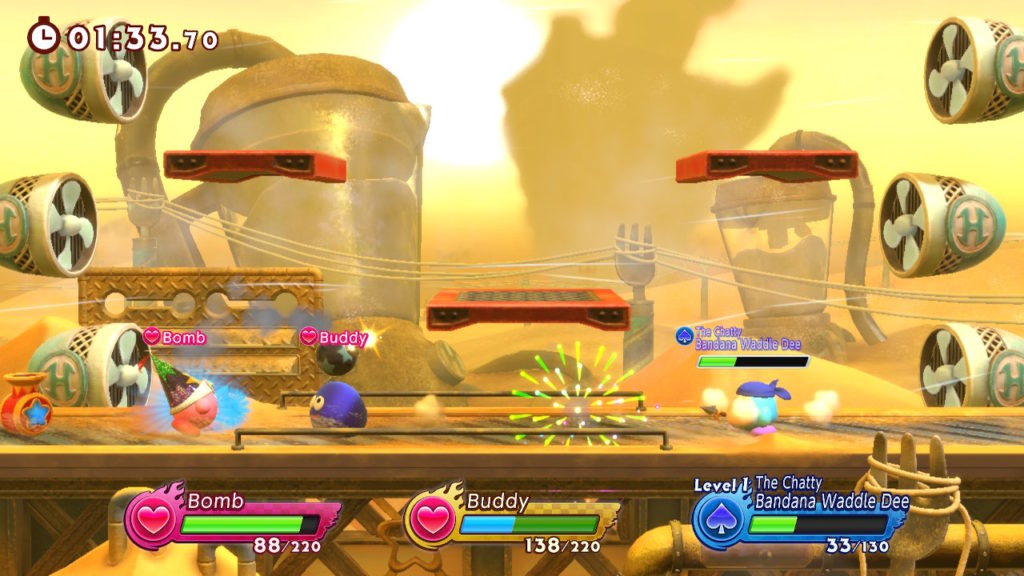 Cuando no tenemos errores de conexión, las partidas tienen un poco de lag, pero si logramos pasar por alto esto, las batallas son interesantes, en una avalancha de Kirbys que también logra emular de buena manera a lo que nos ofrece Super Smash Bros, pero con muchas bolas rosadas atacando al mismo tiempo más uno que otro aliado.