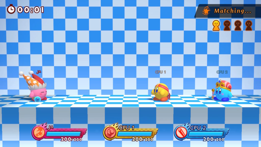 Este modo, denominado modo batalla, es lo más parecido a Smash Bros que encontraremos si somos fanáticos de Kirby, pues, al igual que en dicho juego, tenemos la posibilidad de elegir entre las ya mencionadas habilidades de Kirby y sus compañeros, además de distintos escenarios donde nos enfrentaremos en un combate basado en una barra de vida, y a quien se le agote primero, naturalmente perderá y el combate terminará, siempre y cuando el mismo no reviva, pues se nos da una pequeña chance de revivir si se logra acertar un golpe cuando somos fantasmas luego de que la ya mencionada barra de energía se agota.