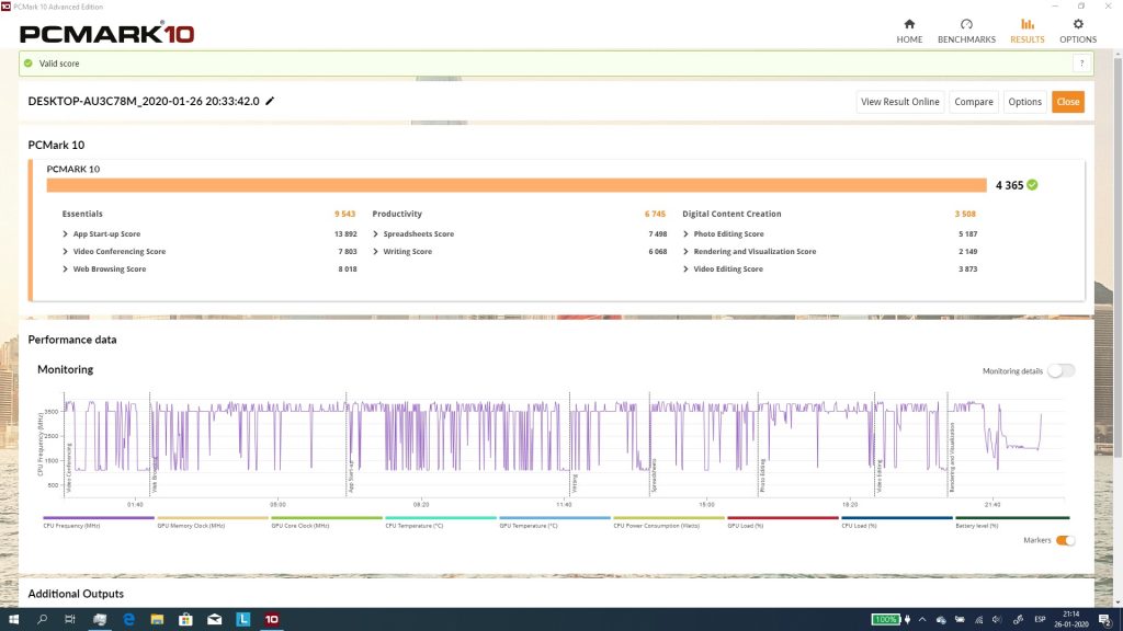 Según mi perspectiva, el apartado de rendimiento es uno de los factores más importantes a considerar en la compra de un computador portátil. Si elegimos bien, nos evitaremos dolores de cabeza al utilizar el equipo o aplicar las famosas actualizaciones de Windows. En esta oportunidad nuestro protagonista posee lo mejor en materia de movilidad, cargando un Intel Core i7 de décima generación (modelo específico 1065G7).