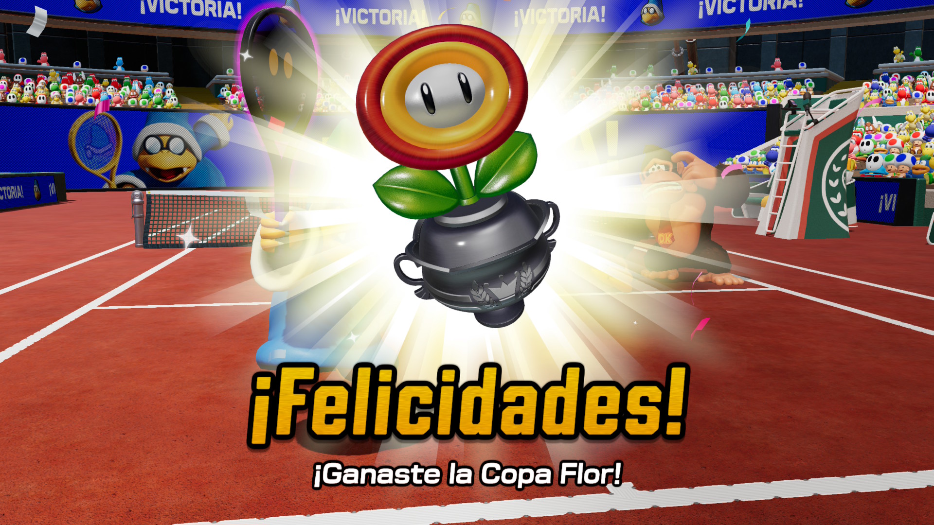 A mitad del juego aparece una Flor Maravilla que desata efectos como tener que lidiar con Hoppos gigantes rebotando o grupos de Piranha Plants cantantes. Todos resultan divertidos, aunque el único inconveniente es que estás limitado a partidos de siete puntos, algo que se siente demasiado rápido.