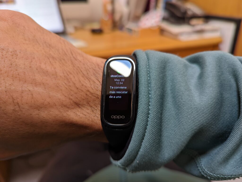 Si lo que buscas es un reloj que te ayude a responder mensajes y ver notificaciones, la pantalla de la Oppo Band te dejará un poco decepcionado, porque su tamaño y formato no es el ideal para este propósito.