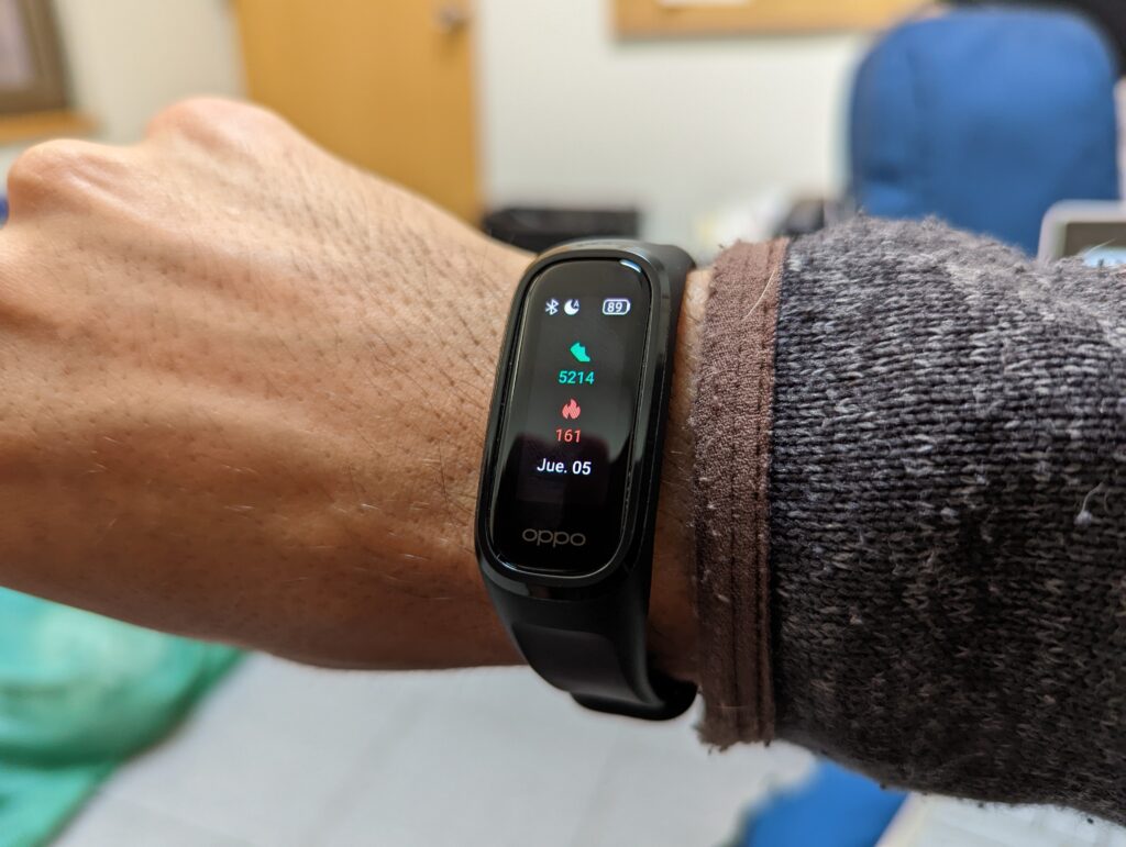Al ser dispositivos económicos, los tracker de actividad física no buscan deslumbrar por su belleza –bueno, a excepción de Fitbit–, y Oppo sigue la misma línea de otros fabricantes, al ofrecer un dispositivo simple, sin botones y con una pantalla alargada que ocupe el menor espacio posible en la muñeca, siendo esas las principales ventajas de su diseño, el cual me parece bastante aburrido.