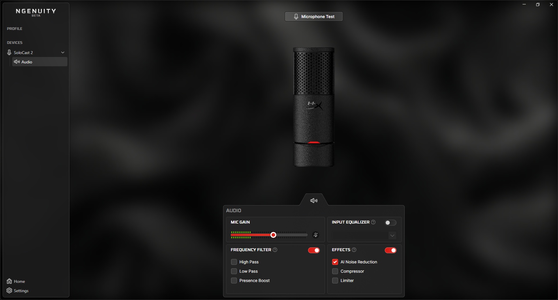 Ahora bien, un elemento que no me gustó del todo es la aplicación nueva NGENUITY Beta, partiendo por su escasa compatibilidad. Es impresentable que en el 2025 no cuente con versiones para Linux o MacOS, haciendo que cualquier ajuste, como un filtro de sonido, la cancelación de ruido, y otros, tengan que ser activados en un PC con Windows. Aun así, esto no empaña para nada la grata experiencia que nos llevamos a la hora de usar el micrófono.