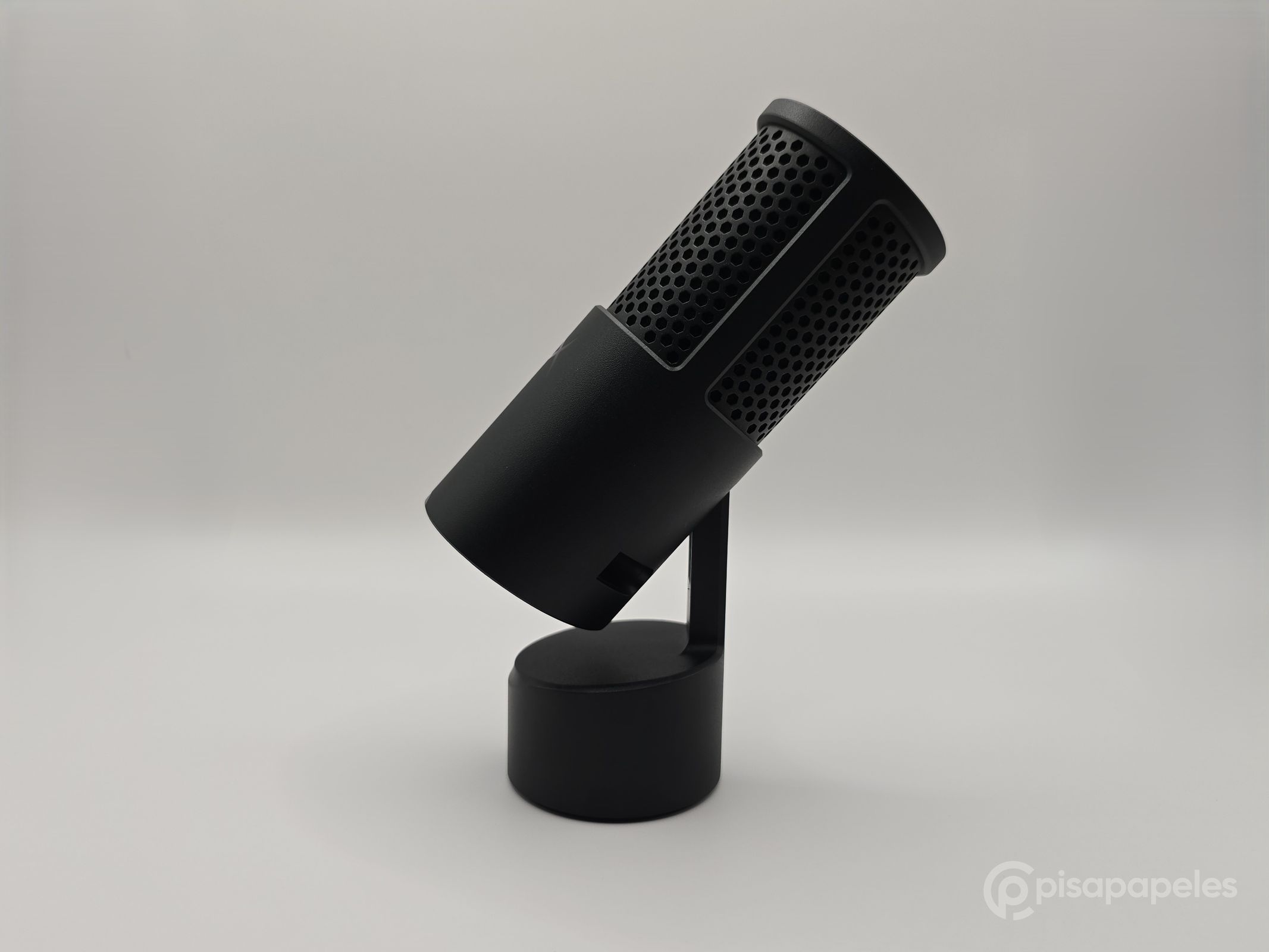 Al momento de sostenerlo en nuestras manos, el material a pesar de ser plástico, se siente de altísima calidad. Es muy sólido en su construcción, ya que al apretarlo con nuestras manos no hallamos crujidos, como si pasa en otras marcas de menor calidad. El tamaño y su peso de 368 gramos son adecuados para cualquier tipo de soporte, y no es muy grande si se desea mostrar en pantalla. A su vez, el dispositivo tiene una rejilla metálica muy sólida, la que ayuda a proteger el receptor de sonido propiamente tal, el cual está ubicado al centro de la estructura.