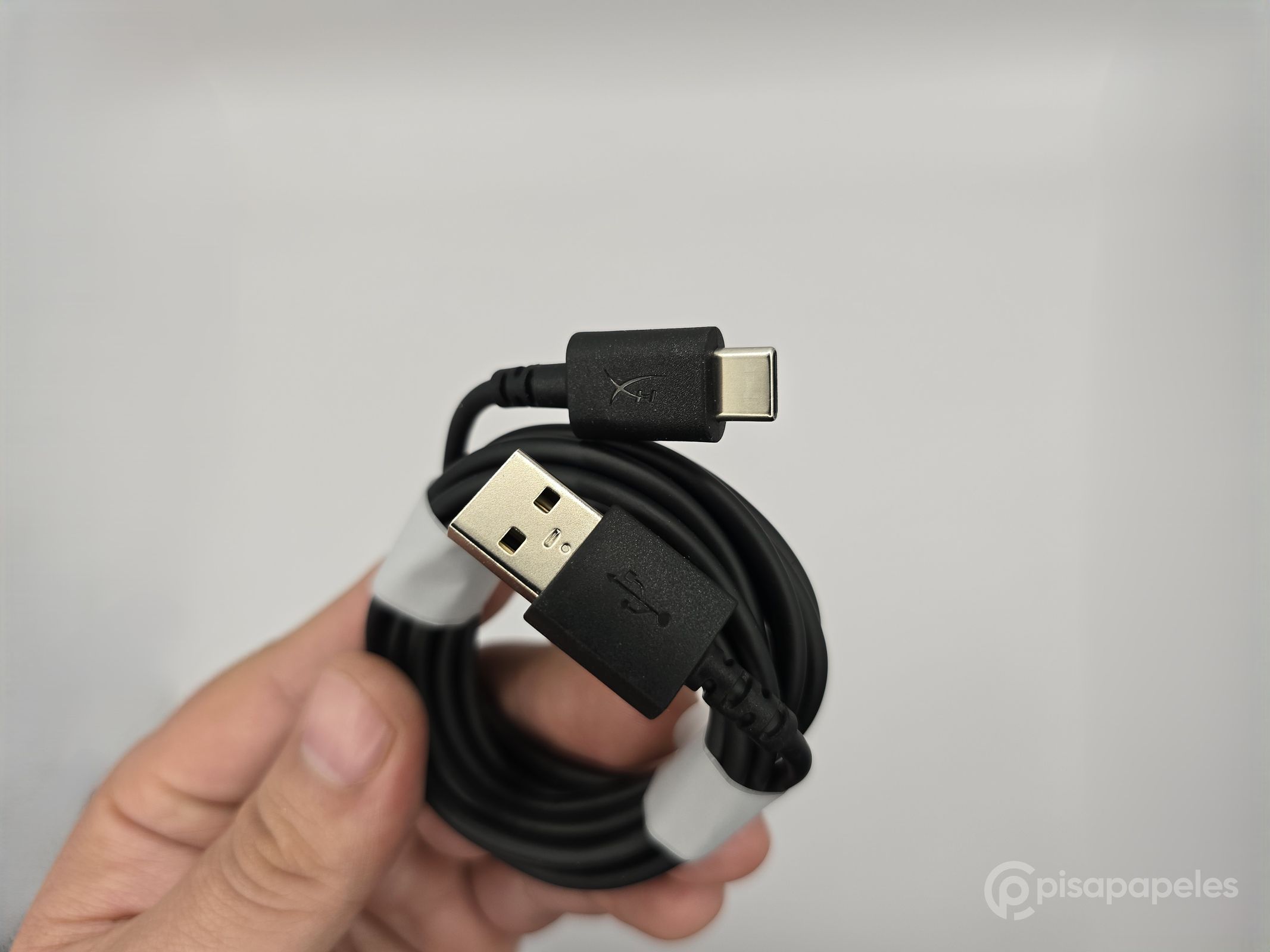 El contenido de la caja es muy sencillo, en su interior podemos encontrar la guía de usuario, un cable USB de tipo A a USB de tipo C, el micrófono y una funda para su respectivo almacenamiento.