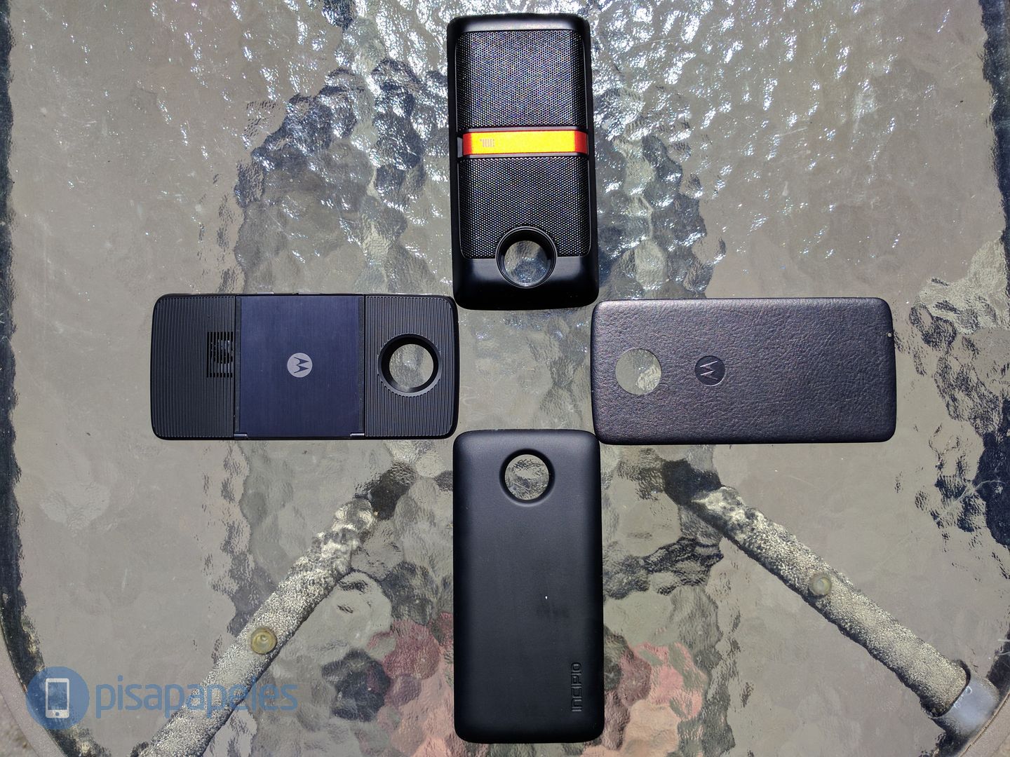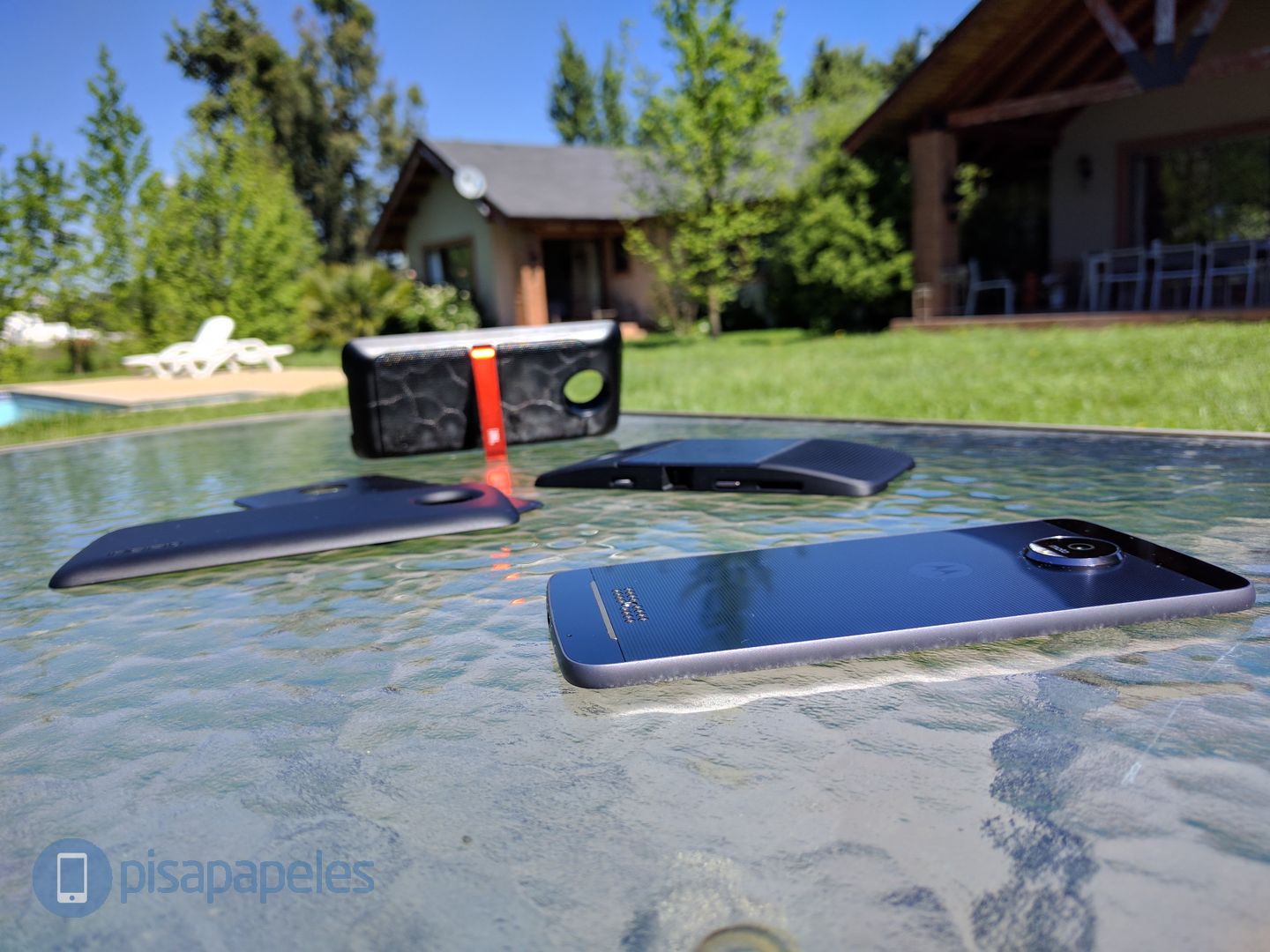 Lo que hace distinto al Moto Z es la capacidad de poder agregar distintos módulos para mejorar ciertas áreas del teléfono. Tuvimos la suerte de probar cuatro de ellos: Style Shell, Incipio offGRID, Moto InstaProjector y JBL Soundboost. Los dos primeros vienen incluidos en la caja al momento de comprarlo.