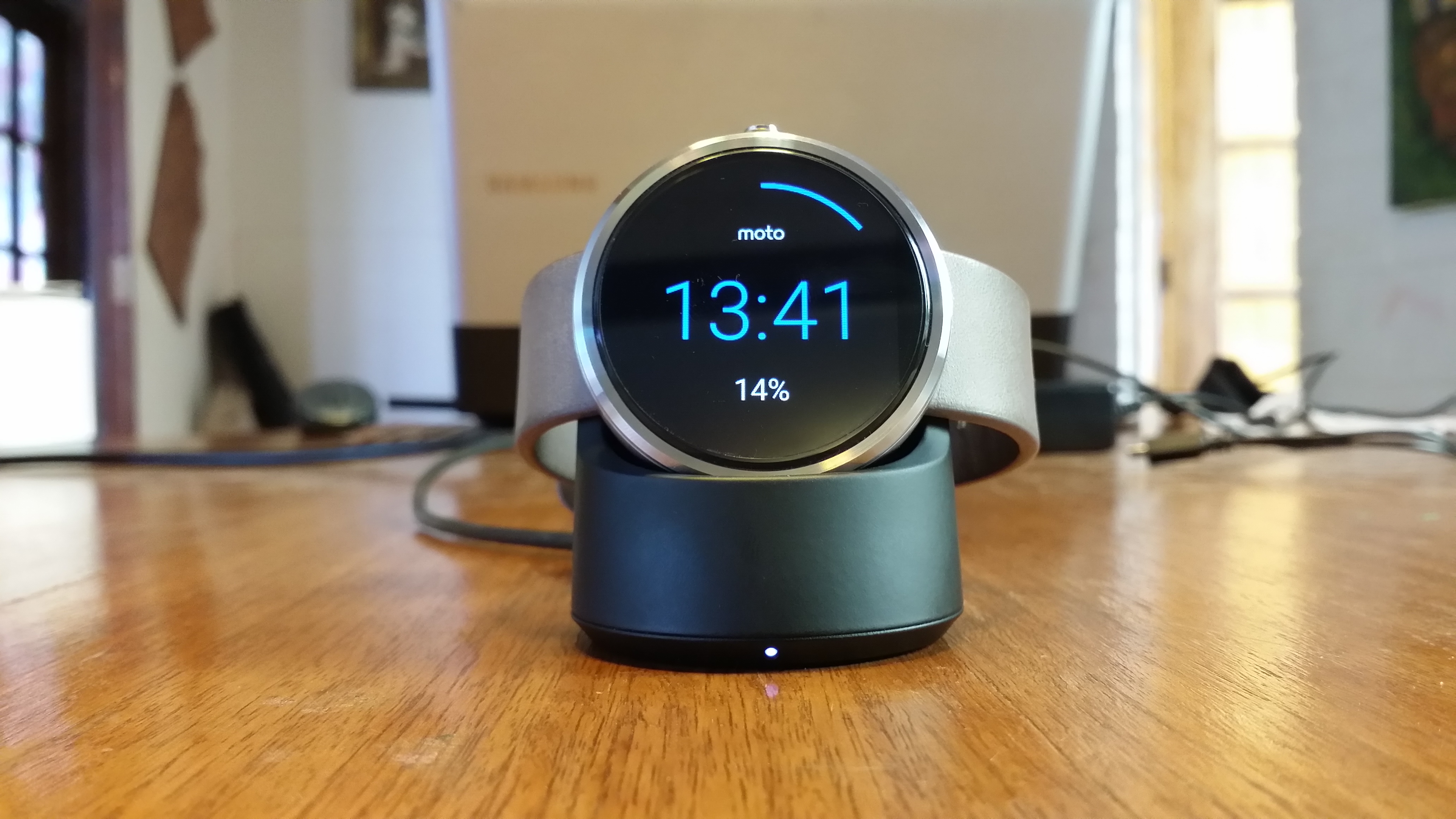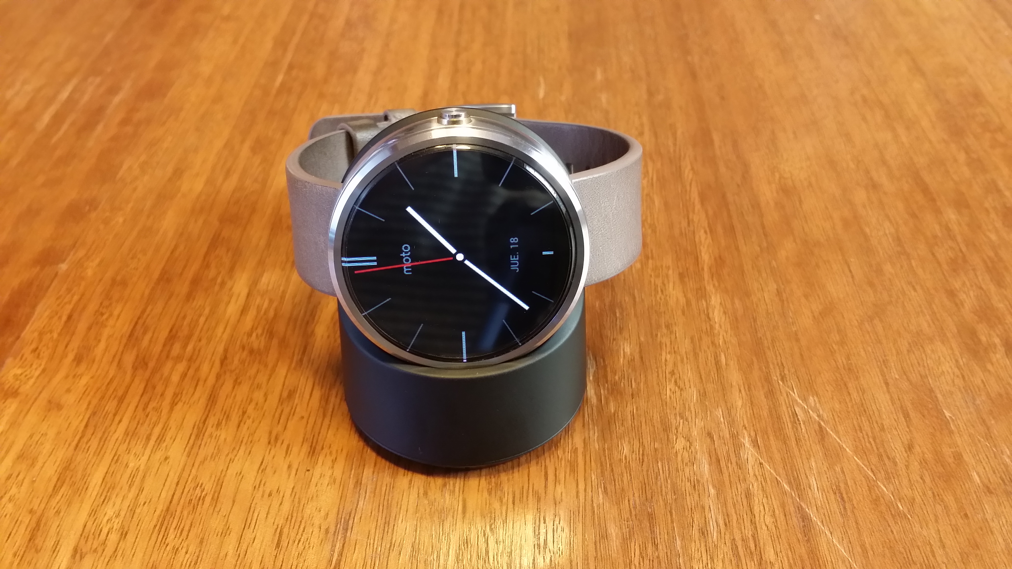 Tal y como se indicó en las especificaciones, la batería del Moto 360 es de iones de litio cuya capacidad es de 320mAh, y se carga de forma inalámbrica mediante el protocolo de transferencia energética Qi.