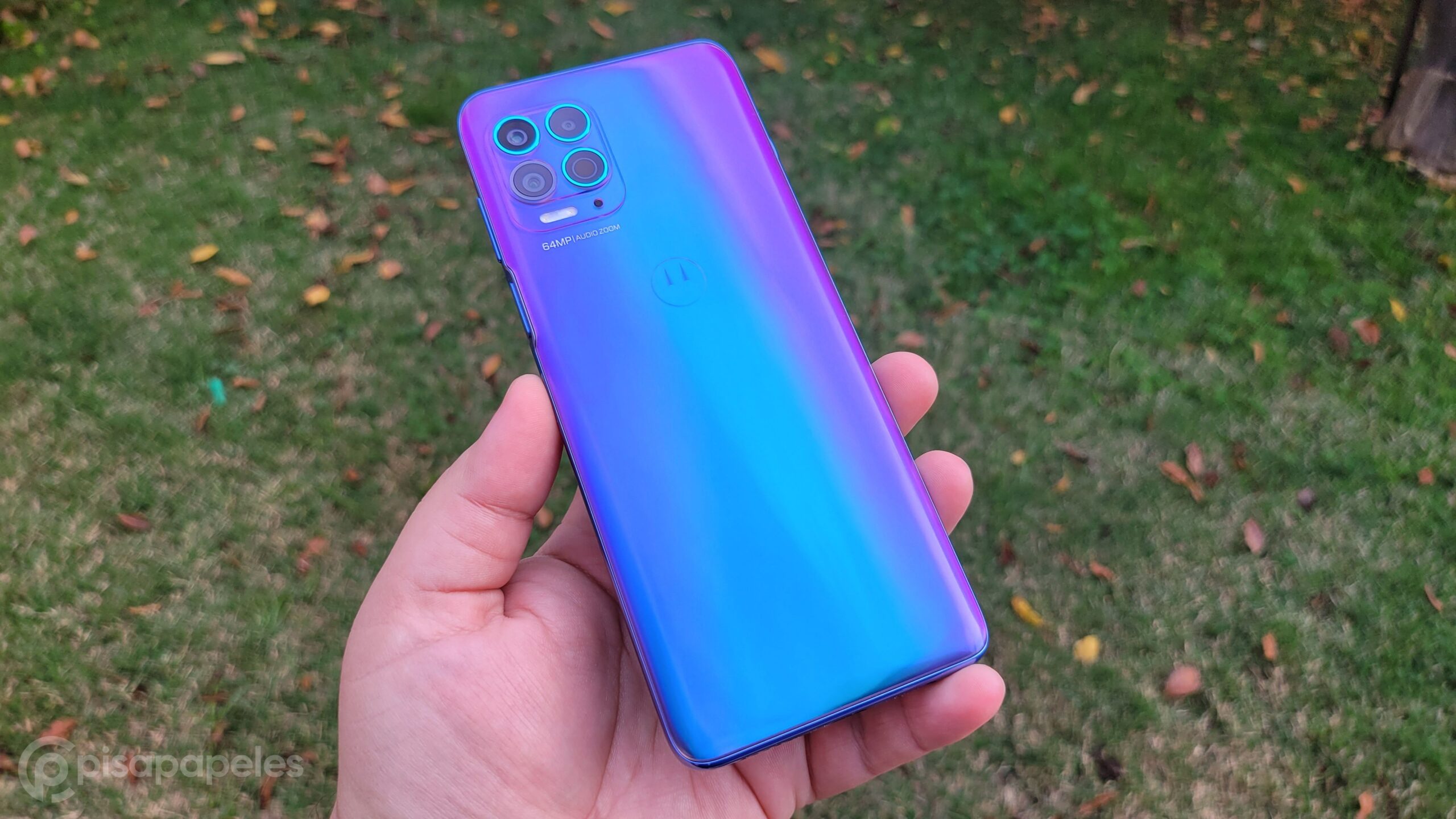 Me tocó probar el Moto G100 en su color Iridescent Sky (en Chile es el verde boreal), un color que a la luz directa se ve muy lindo, pero a la vez se ve como moderno.