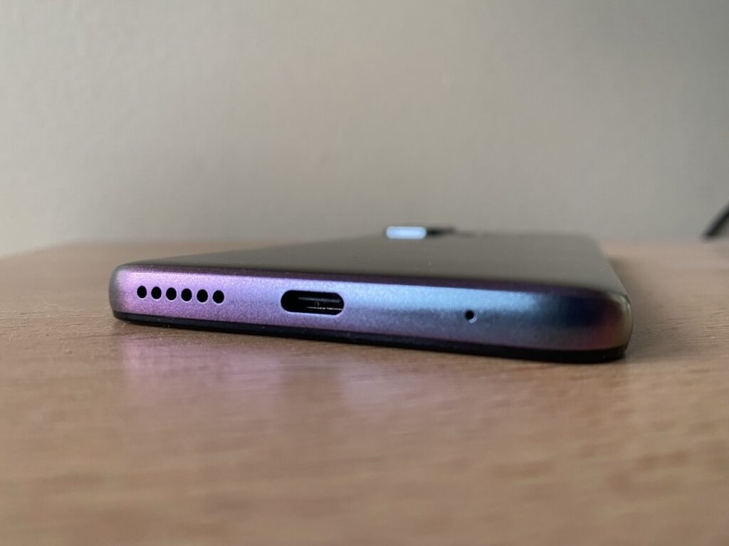 En el costado derecho tenemos tres espacio de botones: bloqueo y apagado, subir/bajar volumen y uno dedicado para Google Assistant. Este último se encuentra bastante arriba a mi parecer y podría confundirse con el de bloqueo, aunque ese botón tiene relieve, sin embargo con carcasa es más difícil identificarlos. En el costado derecho sólo tenemos la bandeja para la nanoSIM y para la tarjeta microSD de hasta 512 GB. En el borde superior tenemos un minijack 3.5 un micrófono, mientras que en la inferior la entrada USB-C, un parlante y micrófono.